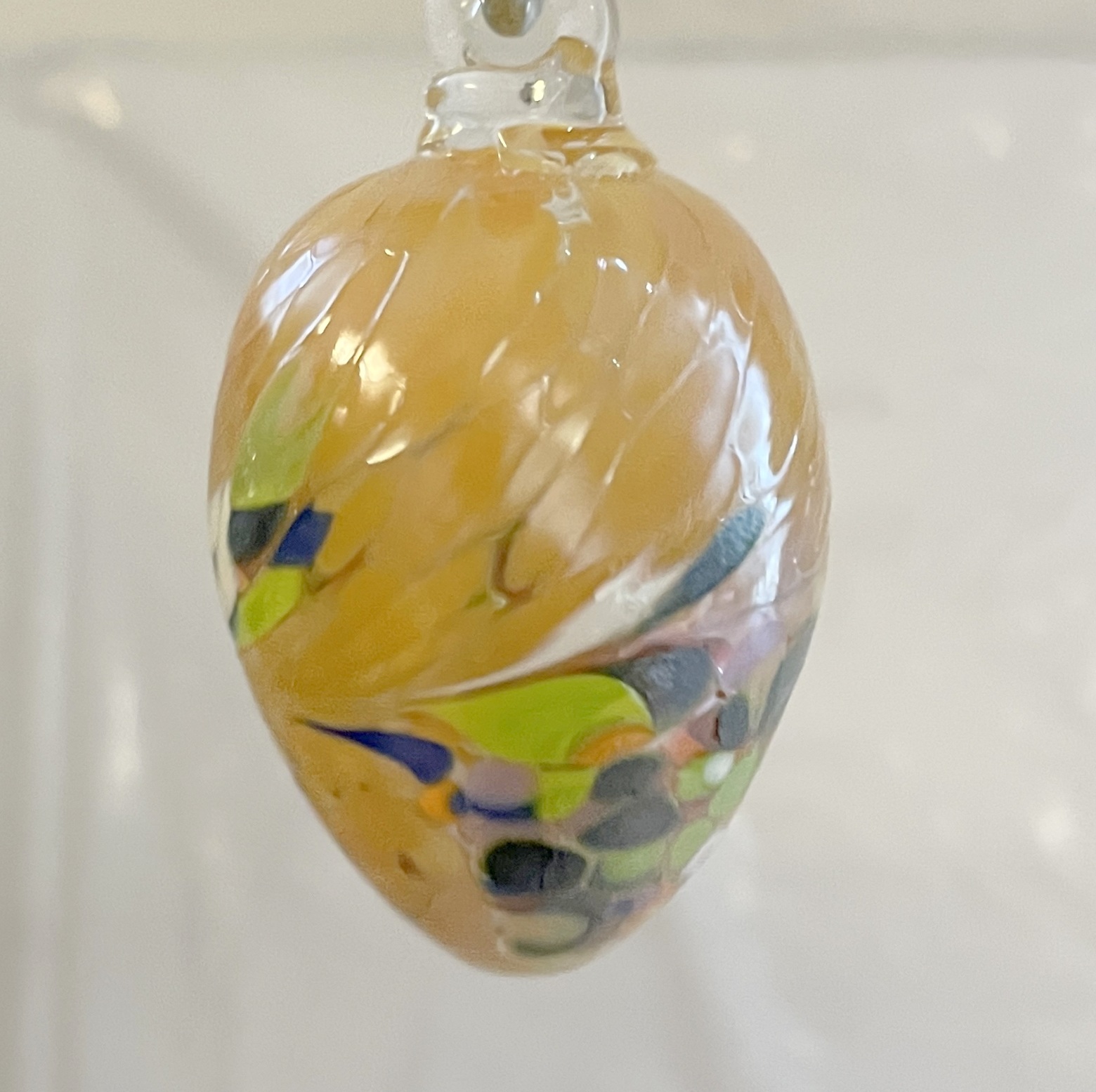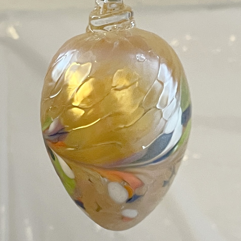 Glas Ei mundgeblasen zum hängen farbig amber bunt Glas Höhe 8,5 cm Durchmesser 4,8 cm sortierte Farben siebe Abbildung