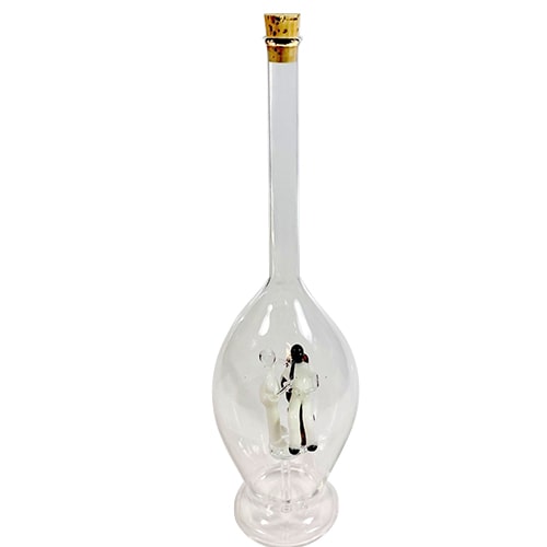 Deko Flasche Höhe ca. 30 cm Füllmenge 0,5 Liter Glaskaraffe mit einem farbigen Zahnarzt innen mit Korken mundgeblasen befüllbar