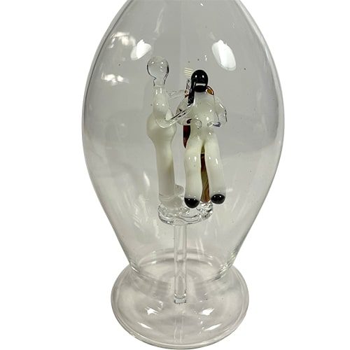 Artikel: Flasche bauchige Glaskaraffe Zierkaraffe mit farbigem Zahnarzt und Patient im Inneren aus farbigem Glas mundgeblasen Füllmenge 0,5 Liter Höhe 30 cm Oberstdorfer Glashütte