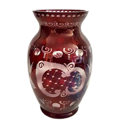Diese antike Vase der Firma Egermann hat die Farbe rubinrot und eine Höhe von ca. 28 cm. Die Vase ist mundgeblasen und deshalb ein Unikat. Die Blumenvase lässt sich sehr schön in Ihrem Wohnbereich dekorieren. Ebenfalls ist diese Vase eine schöne Geschenkidee. Die passenden Glasblumen finden Sie in unserem Online Shop.