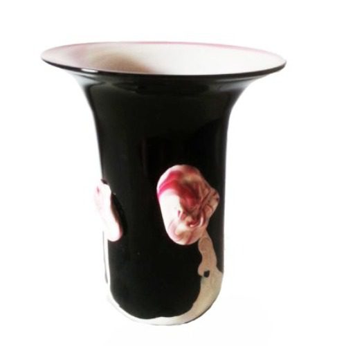 Glas Blumenvase Tulpenvase Höhe ca. 20 cm Schwarz mit aufgetragenem Dekor mundgeblasen