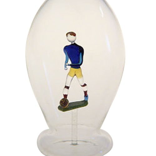 Diese mundgeblasene Glasflasche mit farbigem Fußballer hat eine und eine Füllmenge von 0,5 Liter und eine Höhe von 30 cm. Durch befüllen der Flasche entsteht ein Lupeneffekt welcher das Innenleben der Flasche Vergrößert. Die Flasche ist dekorativ oder auch eine nette Geschenkidee.