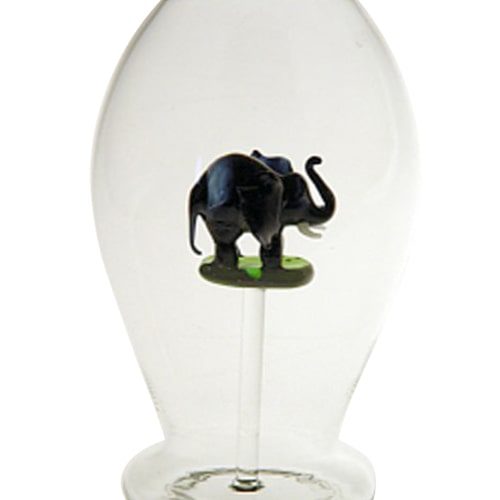 Diese mundgeblasene Glasflasche mit schwarzem Elefant hat eine und eine Füllmenge von 0,5 Liter und eine Höhe von 30 cm. Durch befüllen der Flasche entsteht ein Lupeneffekt welcher das Innenleben der Flasche Vergrößert. Die Flasche ist dekorativ oder auch eine nette Geschenkidee.