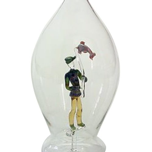 Glas Karaffe Dekoflasche mit farb. Fischer Angler Höhe 30 cm Inhalt 0,5 Liter Klarglas mundgeblasen