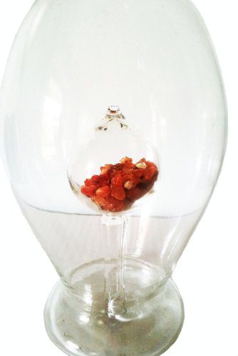 Diese mundgeblasene Glasflasche enthält den Edelstein roten Karneol. Die Steine sehen im inneren der Flasche sehr schön aus, bei befüllter Flasche kommen diese noch mehr zur Geltung. Die Flasche hat eine Höhe von ca. 30 cm und eine Füllmenge von 0,5 Liter.