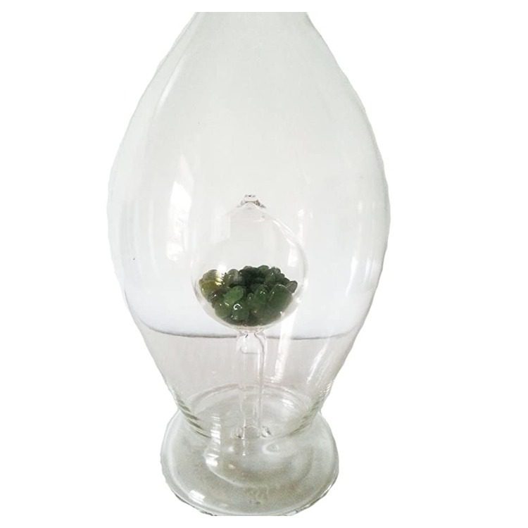 Glas Karaffe mit bunten Halbedelsteinen Karneol in Innerem Höhe 30 cm Inhalt 0,5 Liter mundgeblasen Klarglas