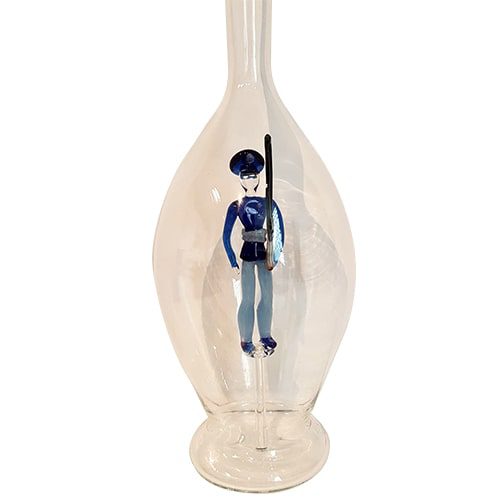 Glas Karaffe mit farb. Soldat mit Gewehr in Innerem Höhe 30 cm Inhalt 0,5 Liter mundgeblasen Klarglas