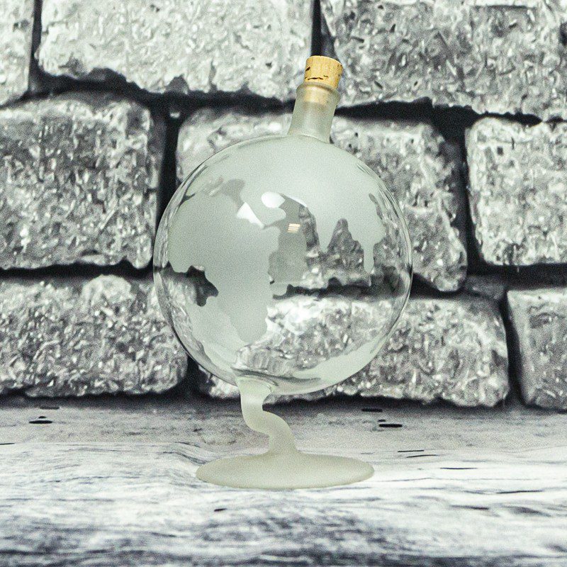 Glasflasche, Designerflasche, Erdball aus Glas,