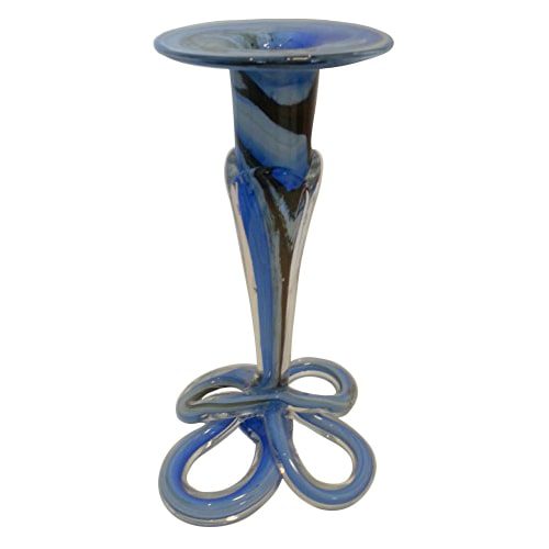 Dieser mundgeblasene Kerzenständer am Fuß in blau-beige-weiß hat eine Höhe von 17 cm. Der Kerzenständer ist eine nette Dekorationsidee für Ihren Wohnraum. Dadurch das jeder Kerzenständer mundgeblasen wird ist jeder davon ein Unikat und dadurch ein echter Hingucker oder eine nette Geschenkidee.