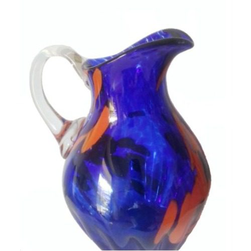 Dieser dekorative Glaskrug in blau orange hat eine Höhe von 26 cm. Der Krug ist als Blumenvase gedacht. Dadurch dass alle Krüge mundgeblasen werden, ist jeder Krug ein echter Hingucker und eine schöne Dekoidee für Ihren Wohnraum.