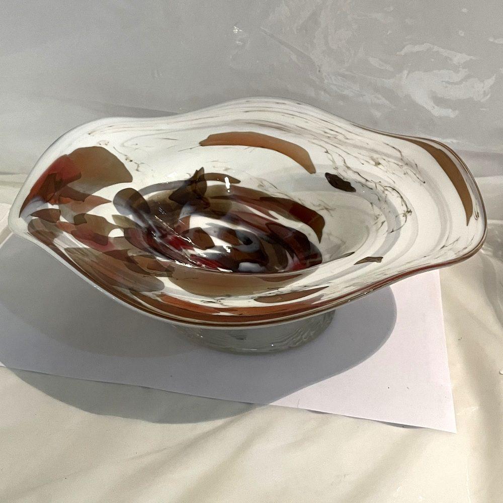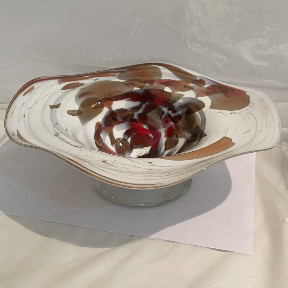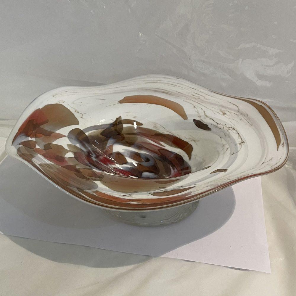 Glasschale mit welligem Rand Durchmesser 24 cm Höhe 7 cm braun beige weiß Angebot