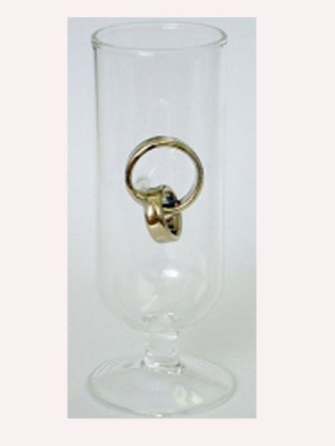 Schnapsglas Stamper mit goldene Hochzeitsringen Höhe ca. 10 cm Klarglas mundgeblasen