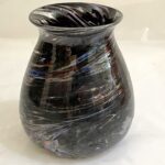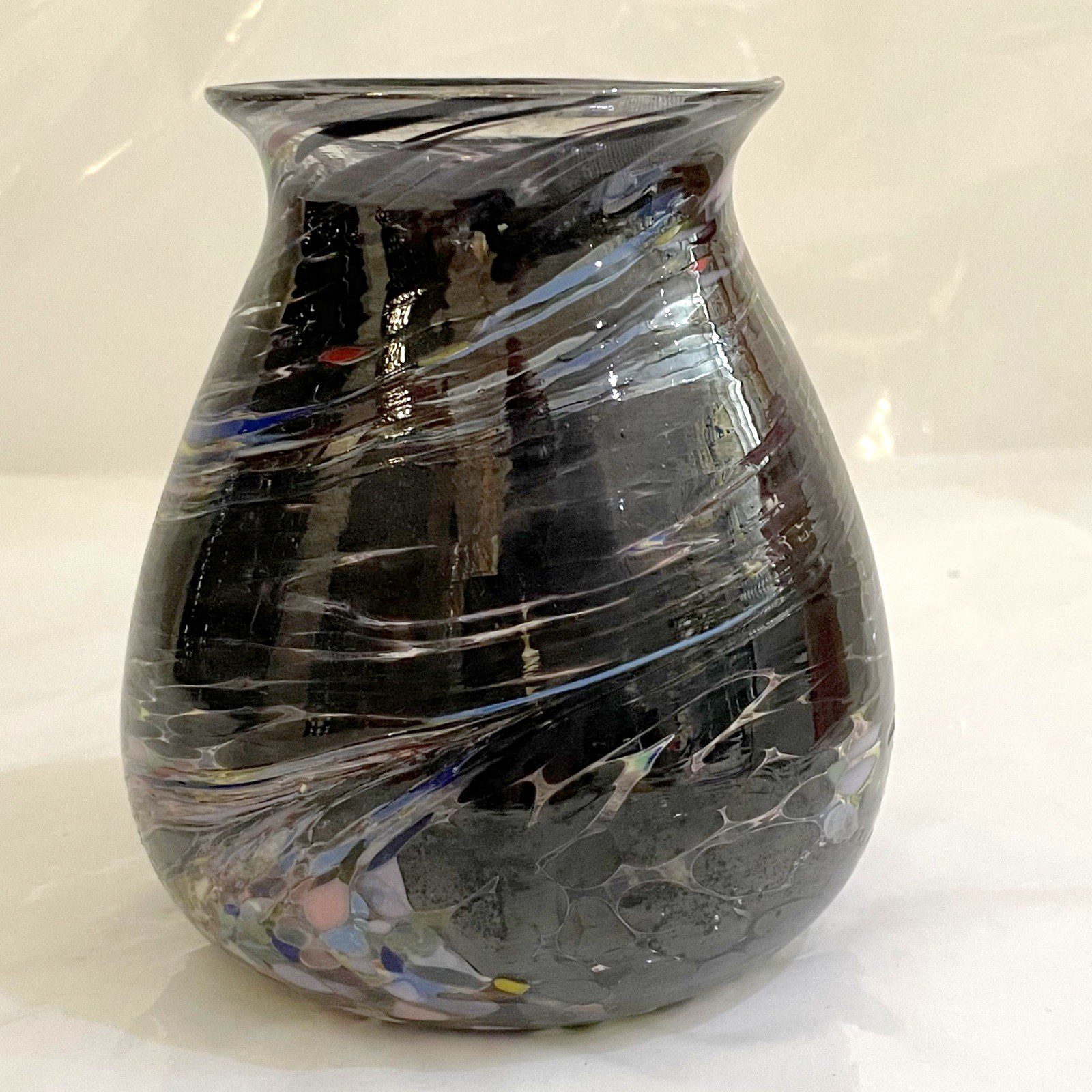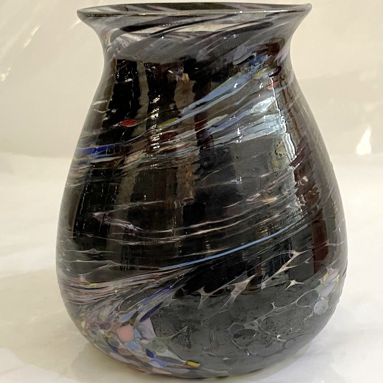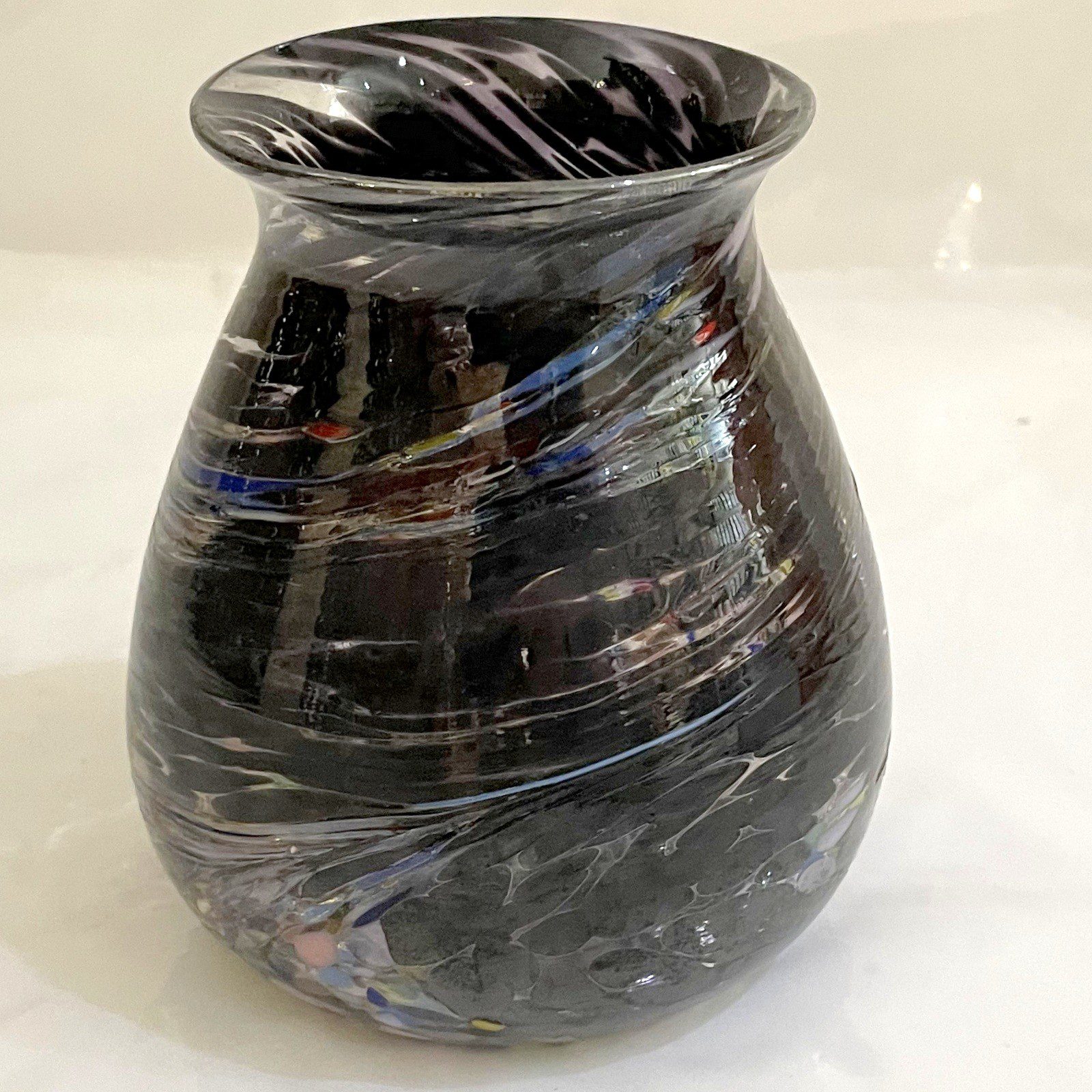 Glas Vase Blumenvase Höhe ca 12 cm in Schwarz Bunt mundgeblasen Breiteste Stelle 10 cm Öffnung ca. 6 cm