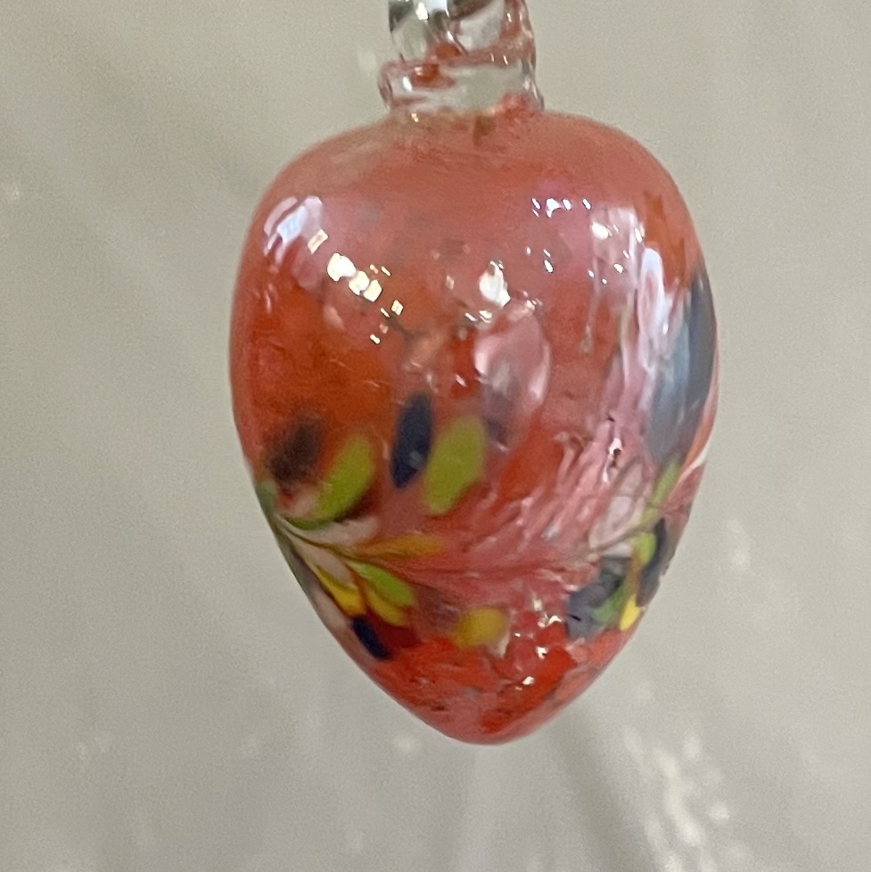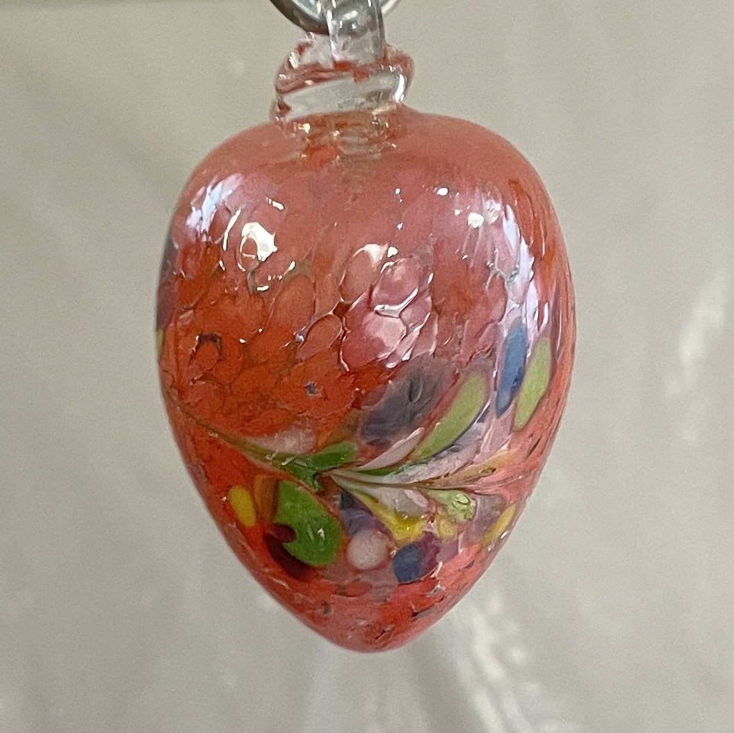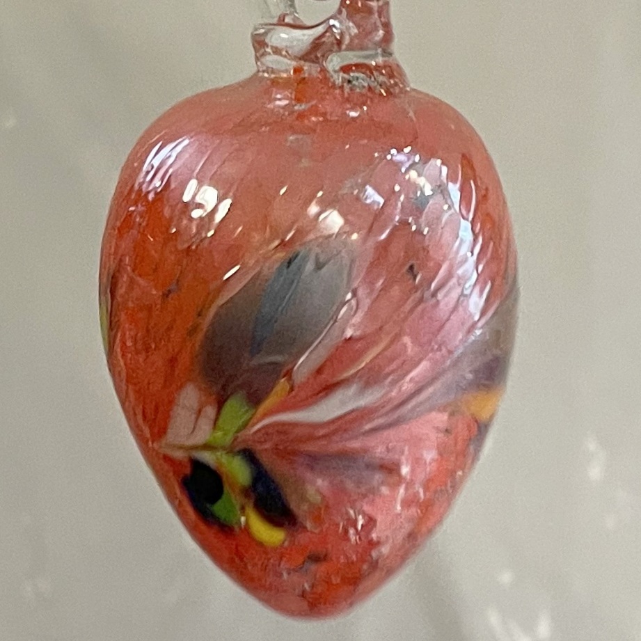 Glas Ei mundgeblasen zum hängen farbig orange bunt Glas Höhe 8,5 cm Durchmesser 4,8 cm sortierte Farben siebe Abbildung