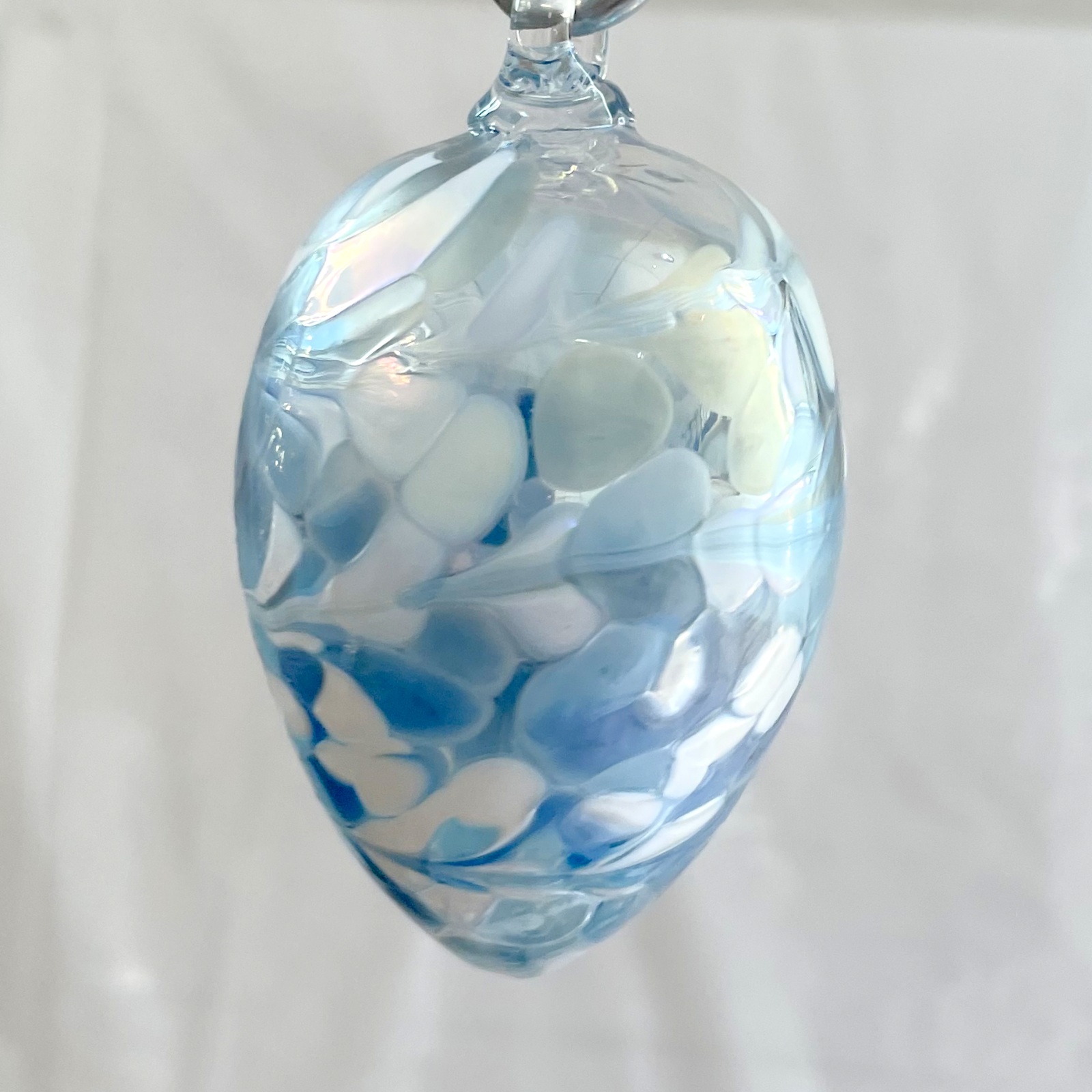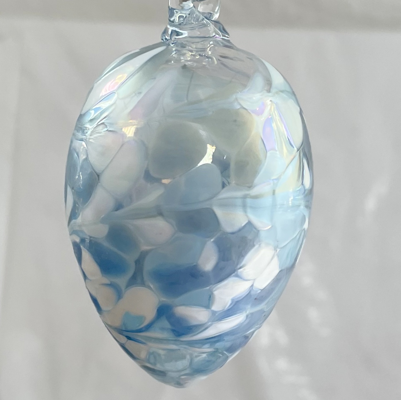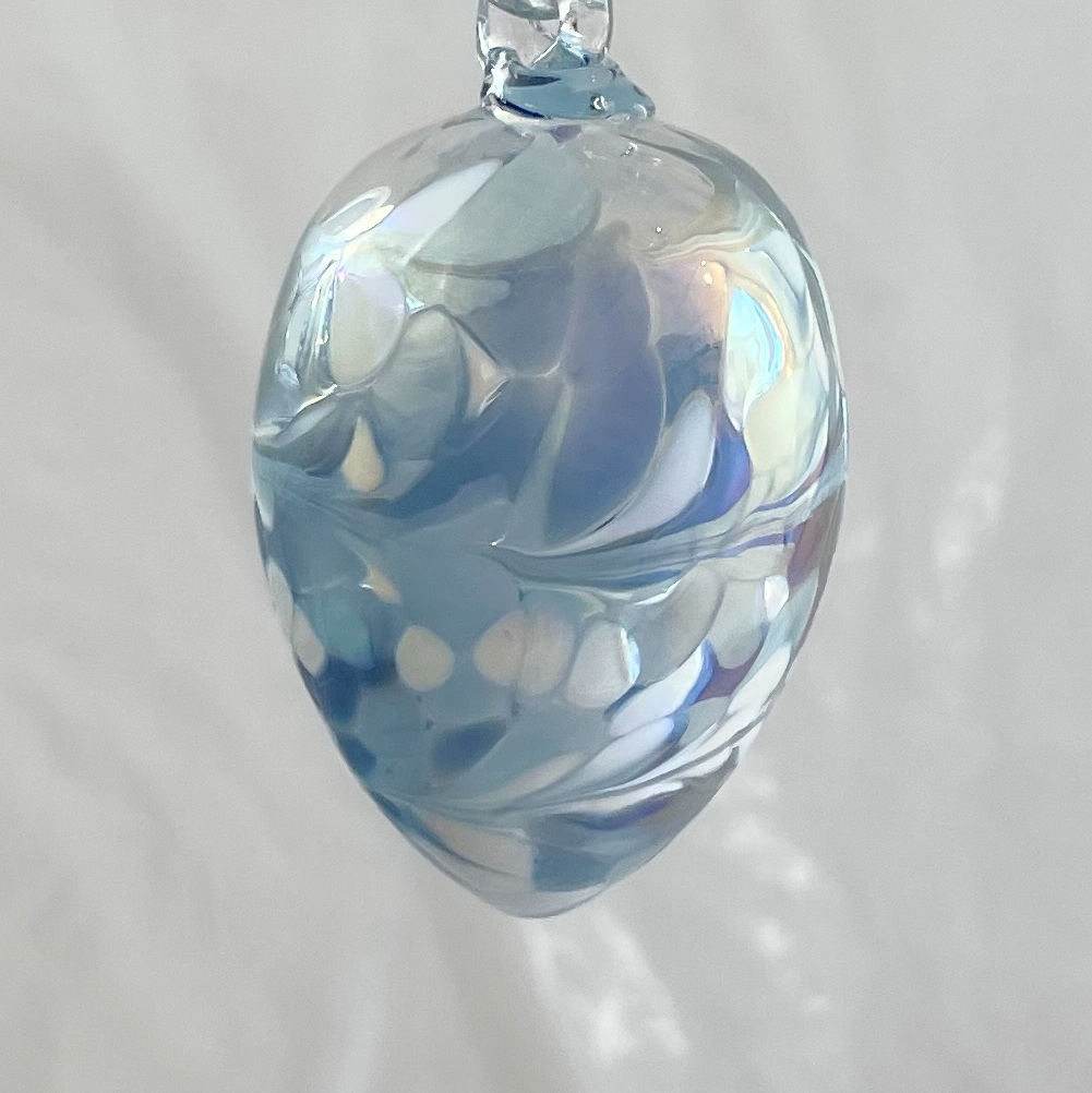 Glasei zum hängen hellbau weiß klar Osterei mundgeblasen Höhe 8,5 cm Durchmesser 4,8 cm
