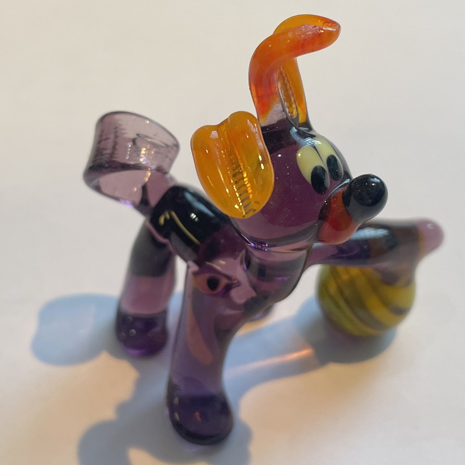 Glastier Hund mit Ball zum hinstellen bunt Handarbeit Höhe ca. 6,5 cm Länge 5,5 cm Breite 4,5 cm