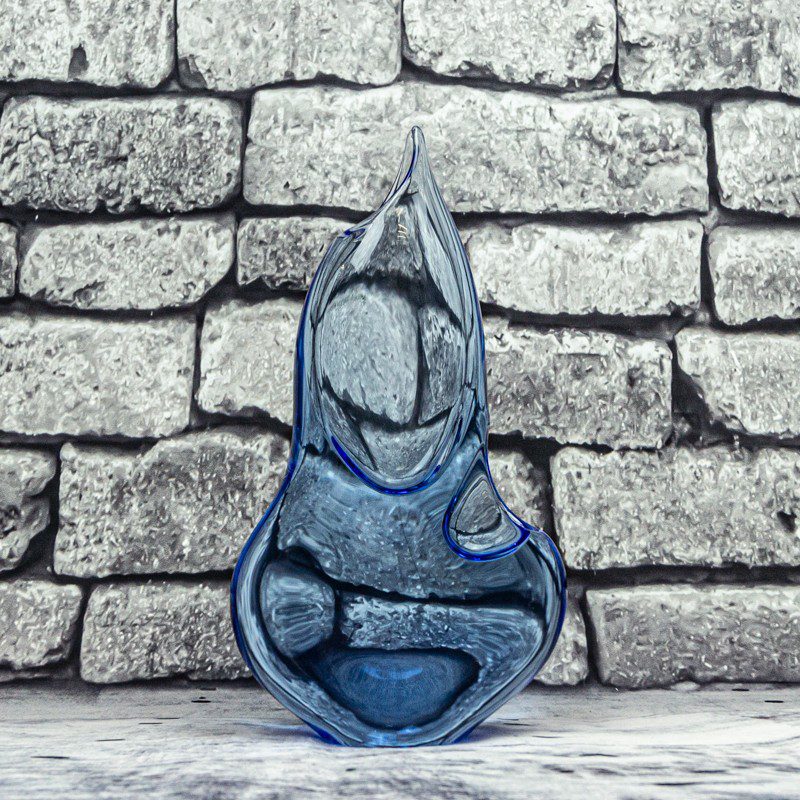 Die Vase wurde in traditioneller Handwerkskunst mundgeblasen, wodurch jedes Stück ein Unikat ist. Die geschmeidige Oberfläche des Glases und das interessante Spiel von Licht und Schatten machen die Vase zu einem echten Blickfang in jedem Raum, sei es als Tischdeko, im Wohnzimmer oder als stilvolles Highlight auf einem Sideboard.