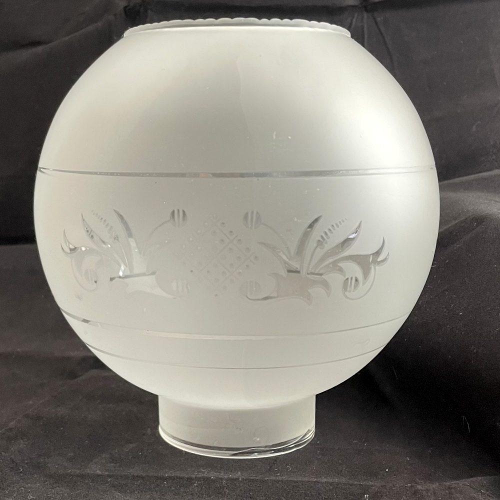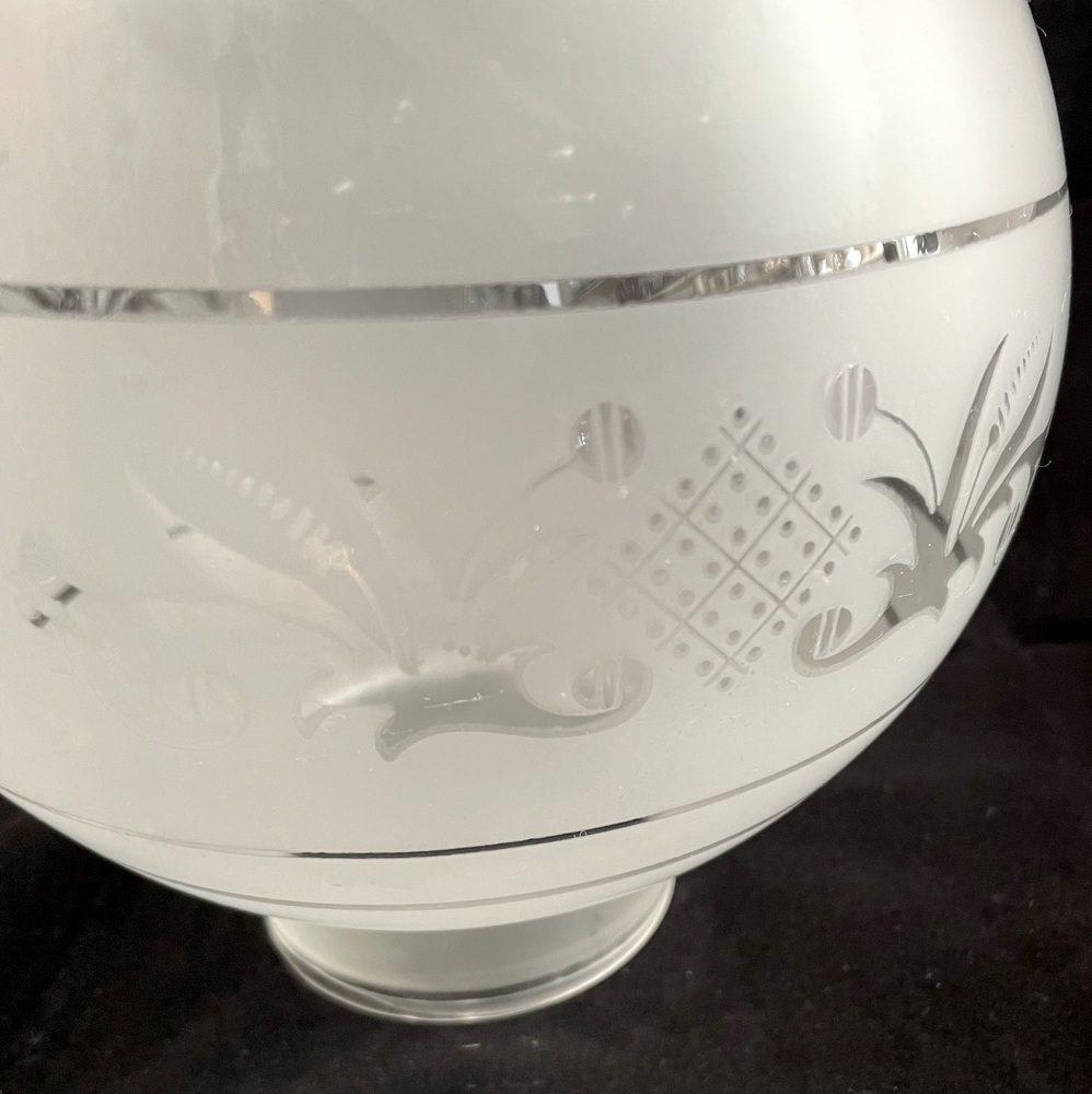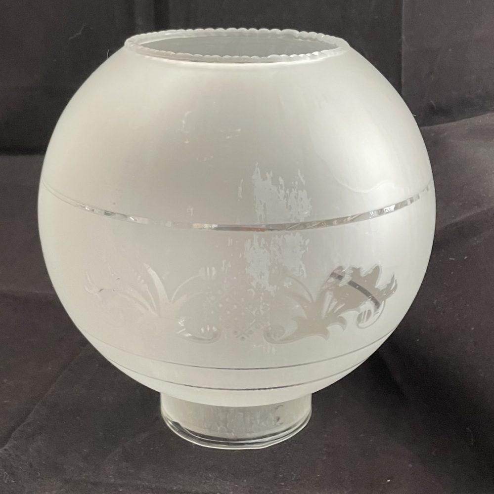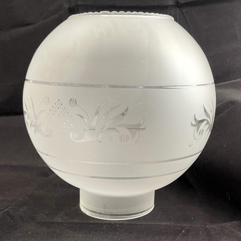 Lampen Schirm mattiert mit 3 klaren Ringen und klarem Motiv Durchmesser unten Sockel 8 cm Höhe Sockel 2,5 cm Gesamthöhe 18 cm breiteste Durchmesser 18 cm Obere Öffnung 9,4 cm