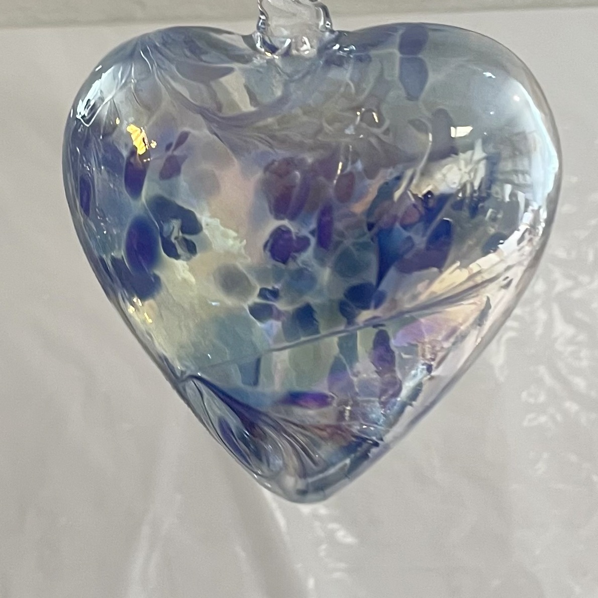 Herz Groß zum hängen bunt Glas Herz Ornament blau klar Fensterdekoration mundgeblasenes Kristallglas Breite 12 cm Höhe ca. 13 cm Tiefe 5,5 cm
