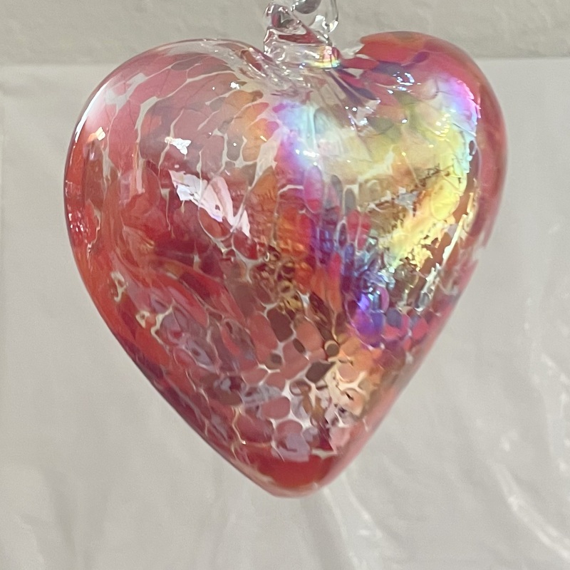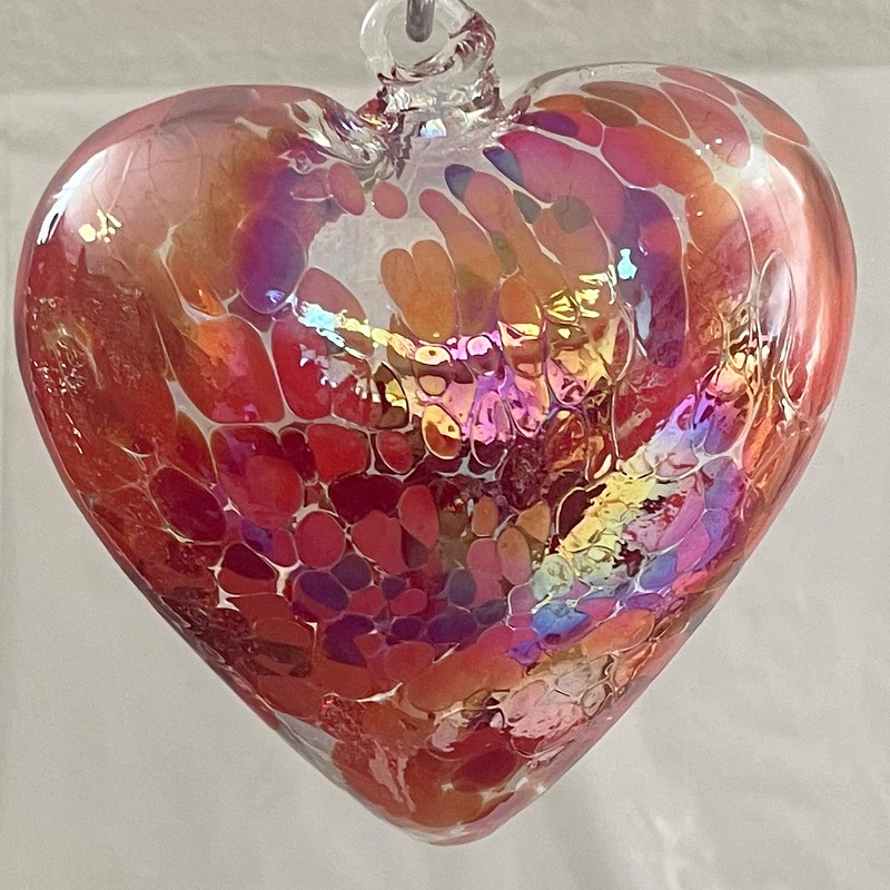 Herz groß zum hängen bunt Glasherz Ornament hellrot Fensterdekoration mundgeblasenes Kristallglas Breite 12 cm Höhe ca. 13 cm Tiefe 5,5 cm