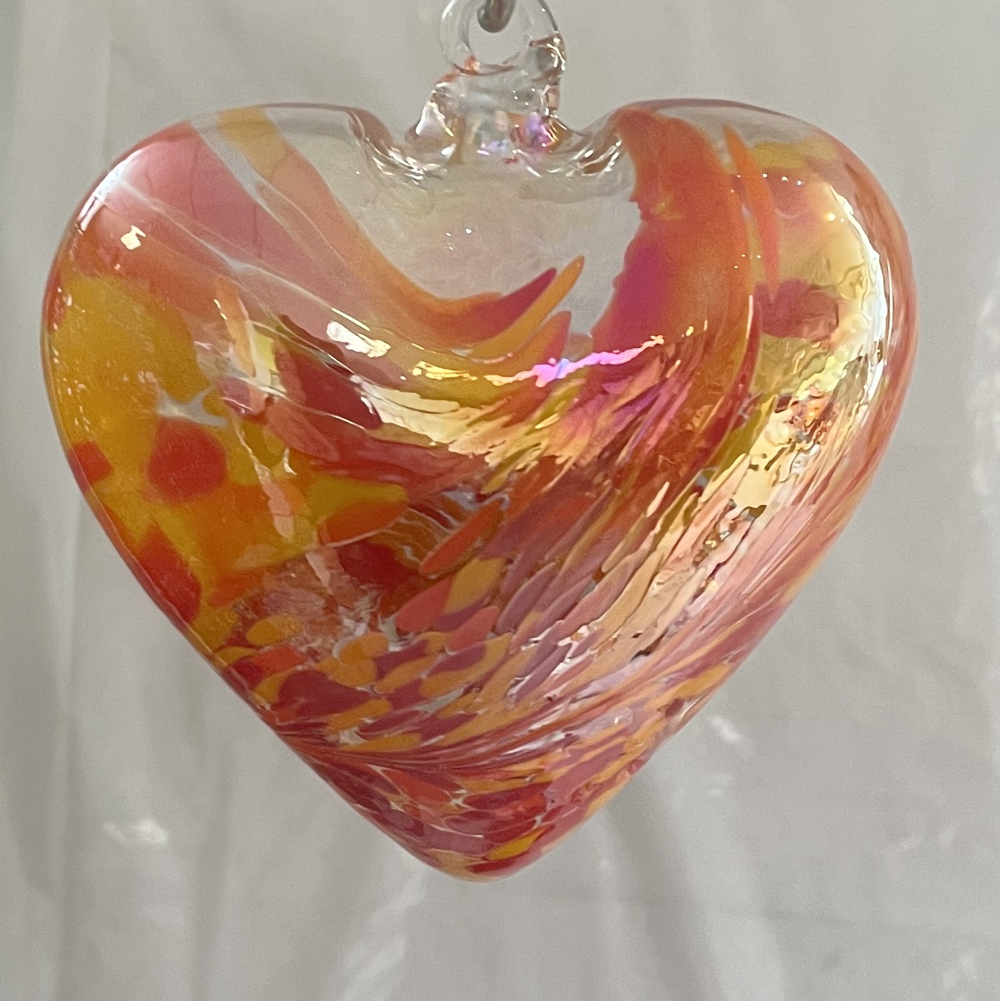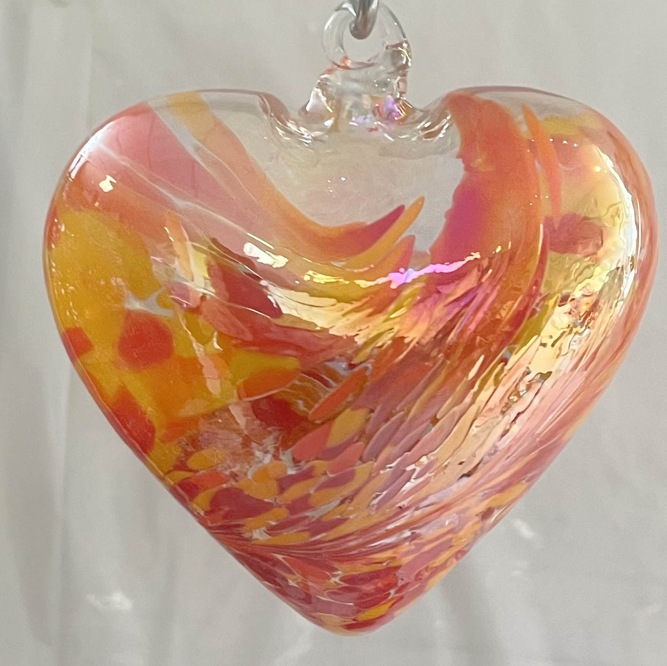 Herz groß zum hängen bunt Glasherz Ornament rot gelb klar Fensterdekoration mundgeblasenes Kristallglas Breite 12 cm Höhe ca. 13 cm Tiefe 5,5 cm