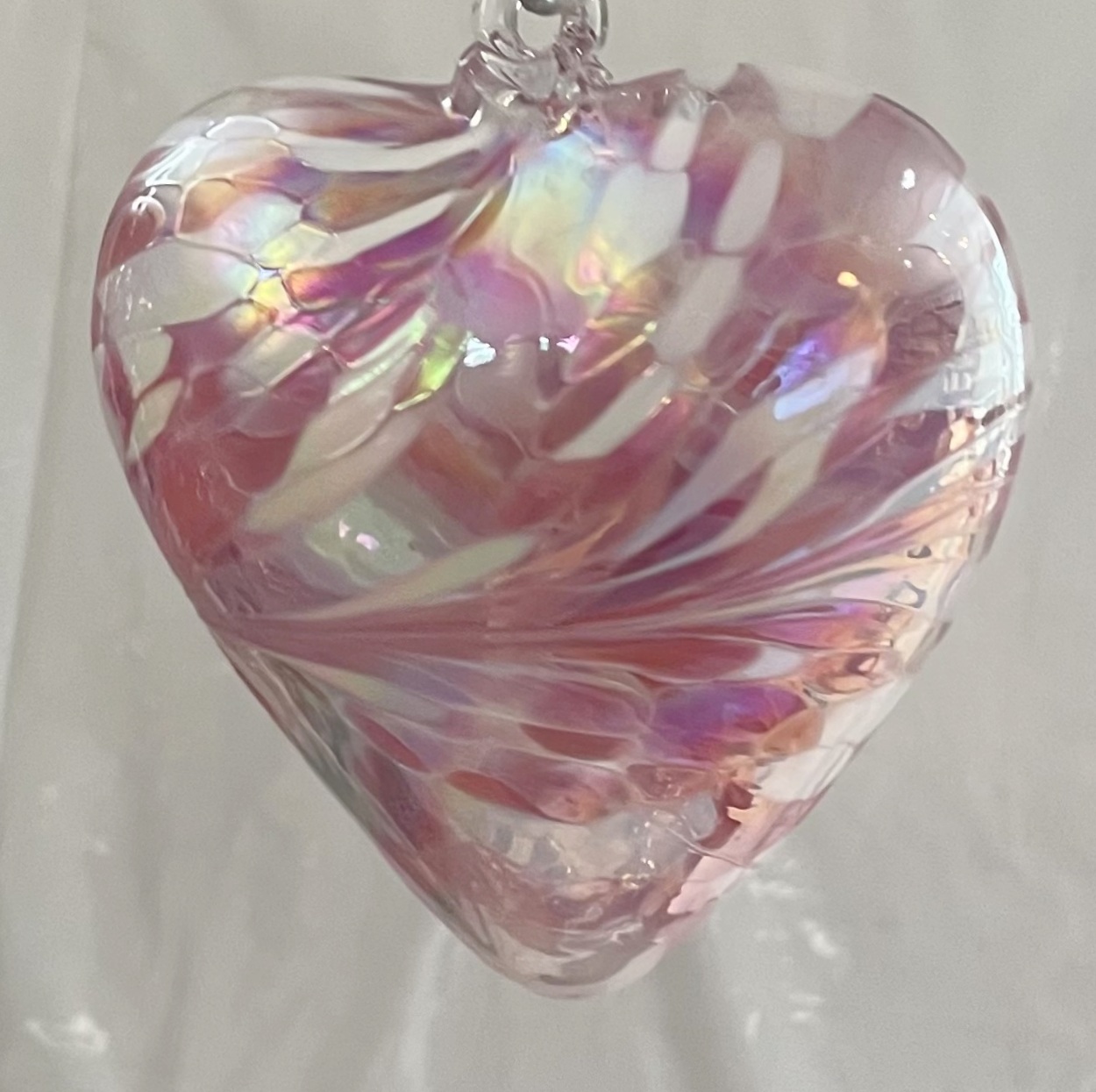 Herz groß zum hängen bunt Glasherz Ornament rosa weiß klar Fensterdekoration mundgeblasenes Kristallglas Breite 12 cm Höhe ca. 13 cm Tiefe 5,5 cm