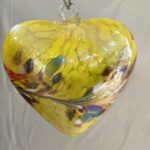 Herz Groß zum hängen bunt Glasherz gelb bunt Fensterdekoration mundgeblasenes Kristallglas Breite 12 cm Höhe ca. 13 cm Tiefe 5,5 cm