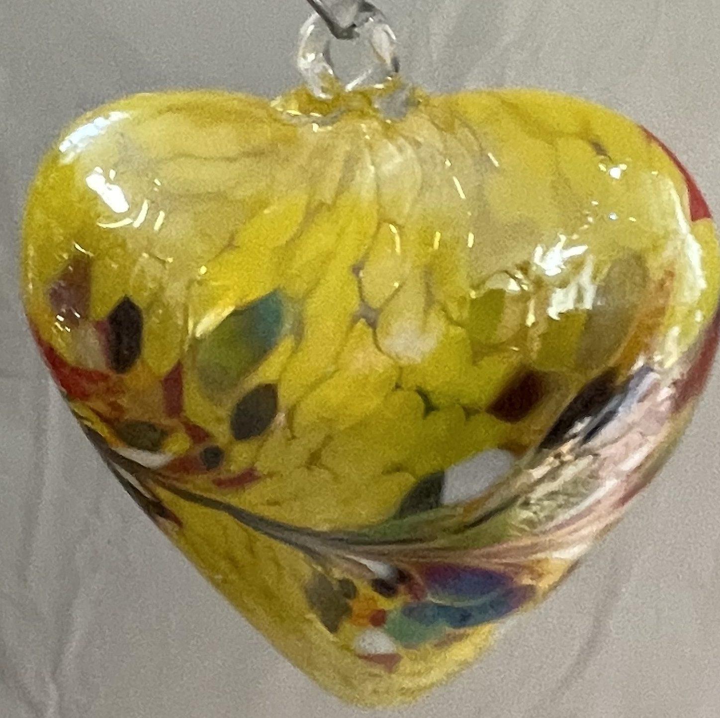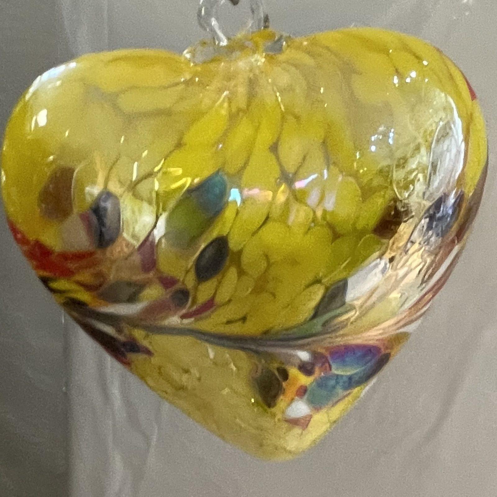 Herz groß zum hängen bunt Glasherz Ornament gelb bunt Fensterdekoration mundgeblasenes Kristallglas Breite 12 cm Höhe ca. 13 cm Tiefe 5,5 cm