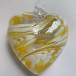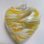 Herz zum hängen bunt Glasherz Ornament gelb weiß klar Fensterdekoration mundgeblasenes Kristallglas Breite 7,5 cm Höhe ca. 9 cm Tiefe 4 cm