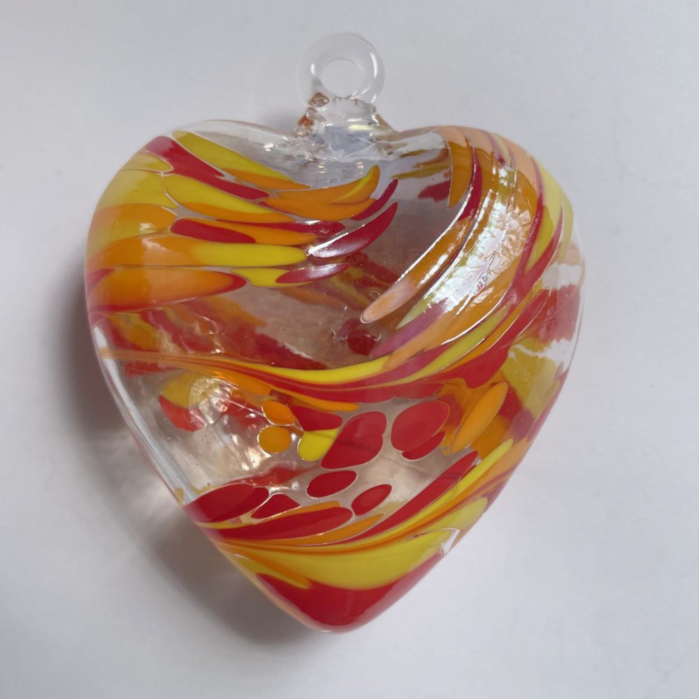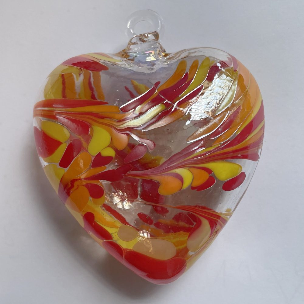 Herz zum hängen bunt Glasherz rot gelb klar Fensterdekoration mundgeblasenes Kristallglas Breite 7,5 cm Höhe ca. 9 cm Tiefe 4 cm