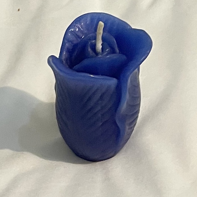 Hochwertige Wachskerze in Blütenform Farbe blau Höhe ca. 7 cm, Durchmesser ca. 5 cm