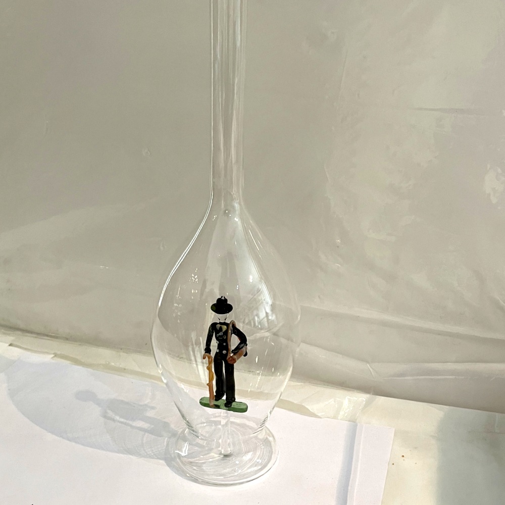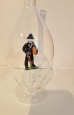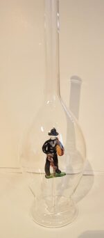 Figurenflasche mit buntem Zimmermann und Korken Höhe 30 cm Inhalt 0,5 Liter mundgeblasen Klarglas