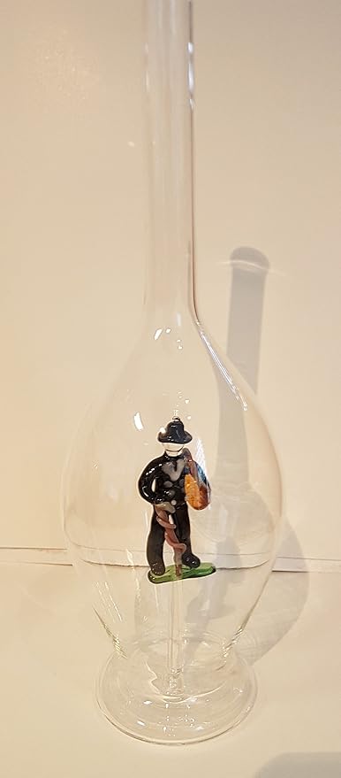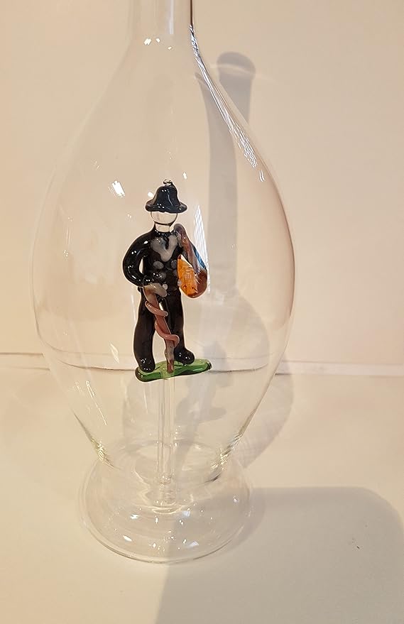 Diese mundgeblasene Glasflasche mit farbigem Zimmermann hat eine Füllmenge von 0,5 Liter und eine Höhe von 30 cm. Durch befüllen der Flasche entsteht ein Lupeneffekt welcher das Innenleben der Flasche Vergrößert. Die Flasche ist dekorativ oder auch eine nette Geschenkidee.