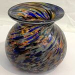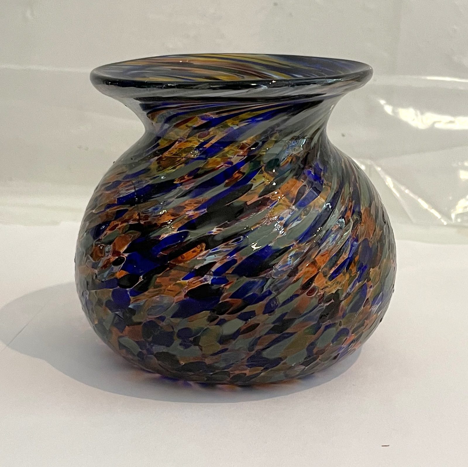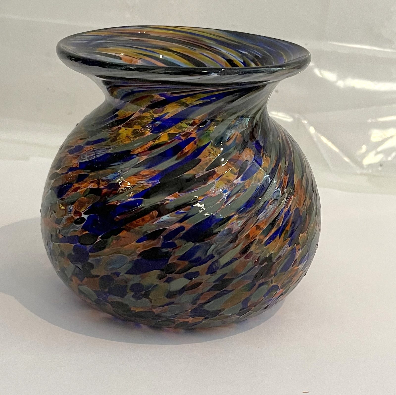 Kleine Kugelvase in der Farbe bunt mundgeblasen Höhe ca. 7,5 cm und Durchmesser 10 cm