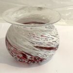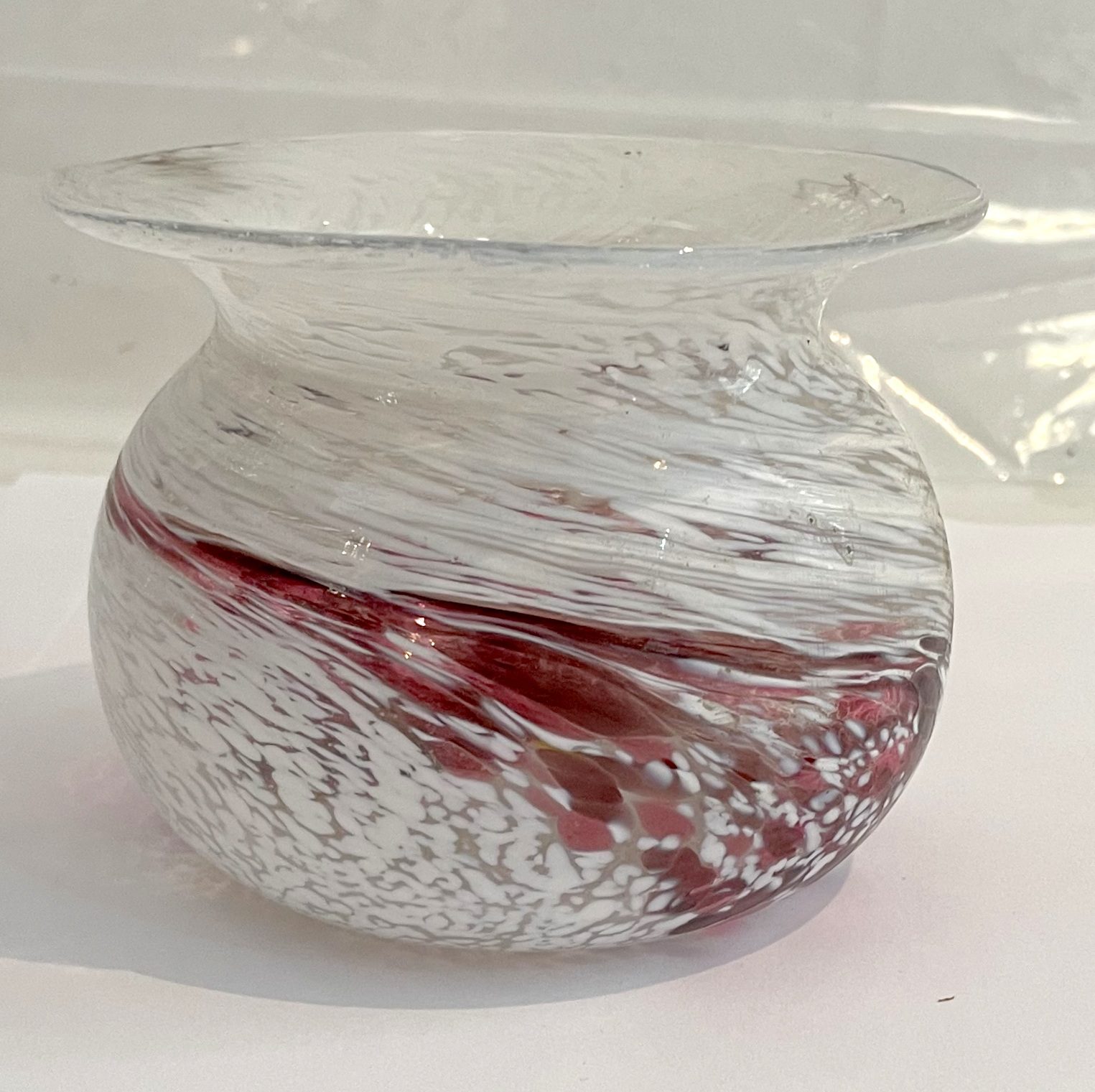 Kleine Kugelvase in der Farbe rosa violett weiß mundgeblasen Höhe ca. 7,5 cm und Durchmesser 10 cm