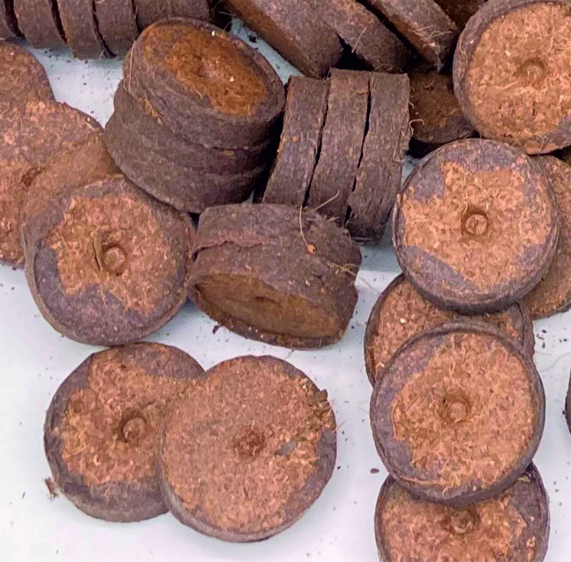Kokosquelltabletten mit ca. 3,6 cm Durchmesser. Besonders umweltfreundlich, da torffrei. Mit etwas Wasser übergossen, erhält man einen kleinen Pflanzballen – perfekt zur Pflanzenanzucht.