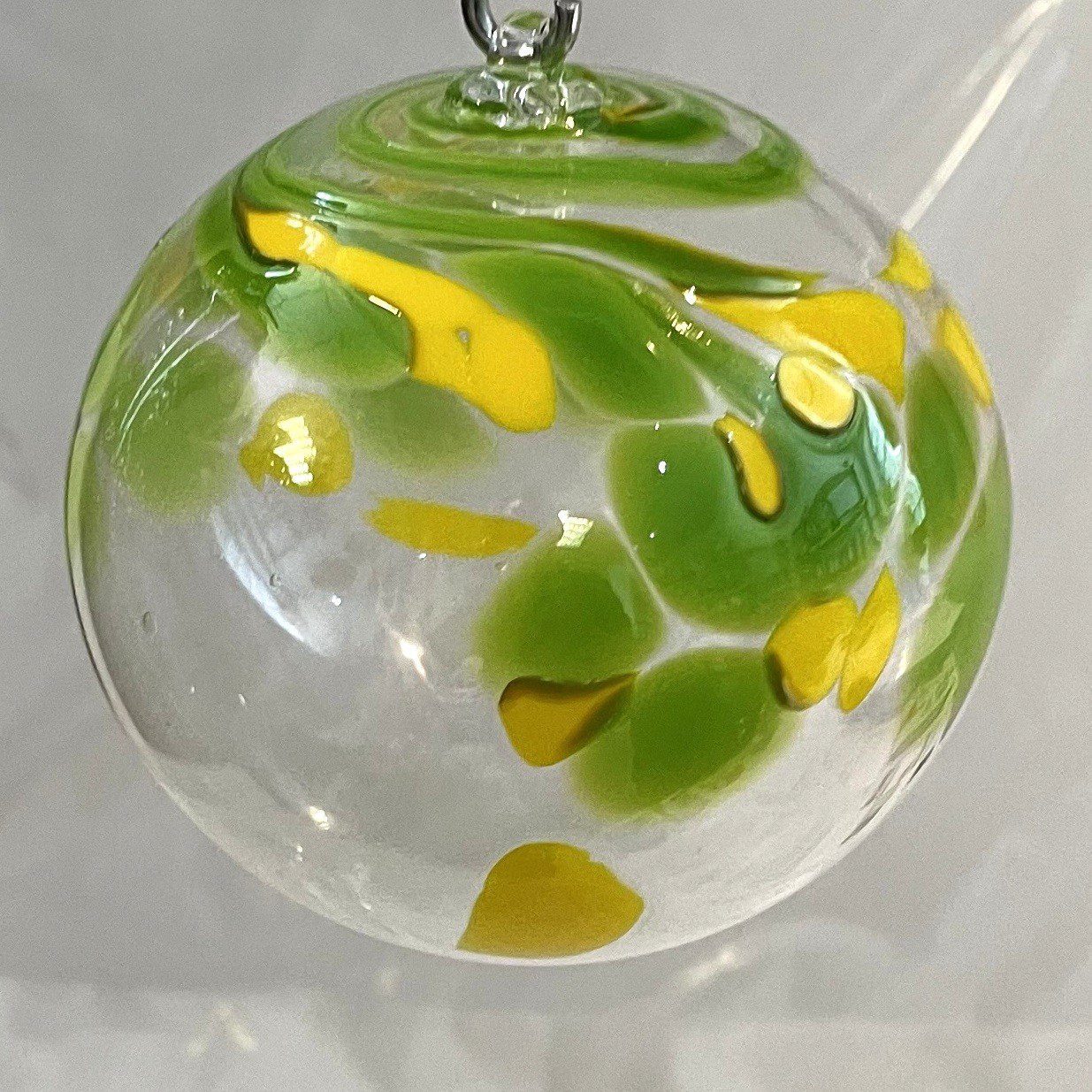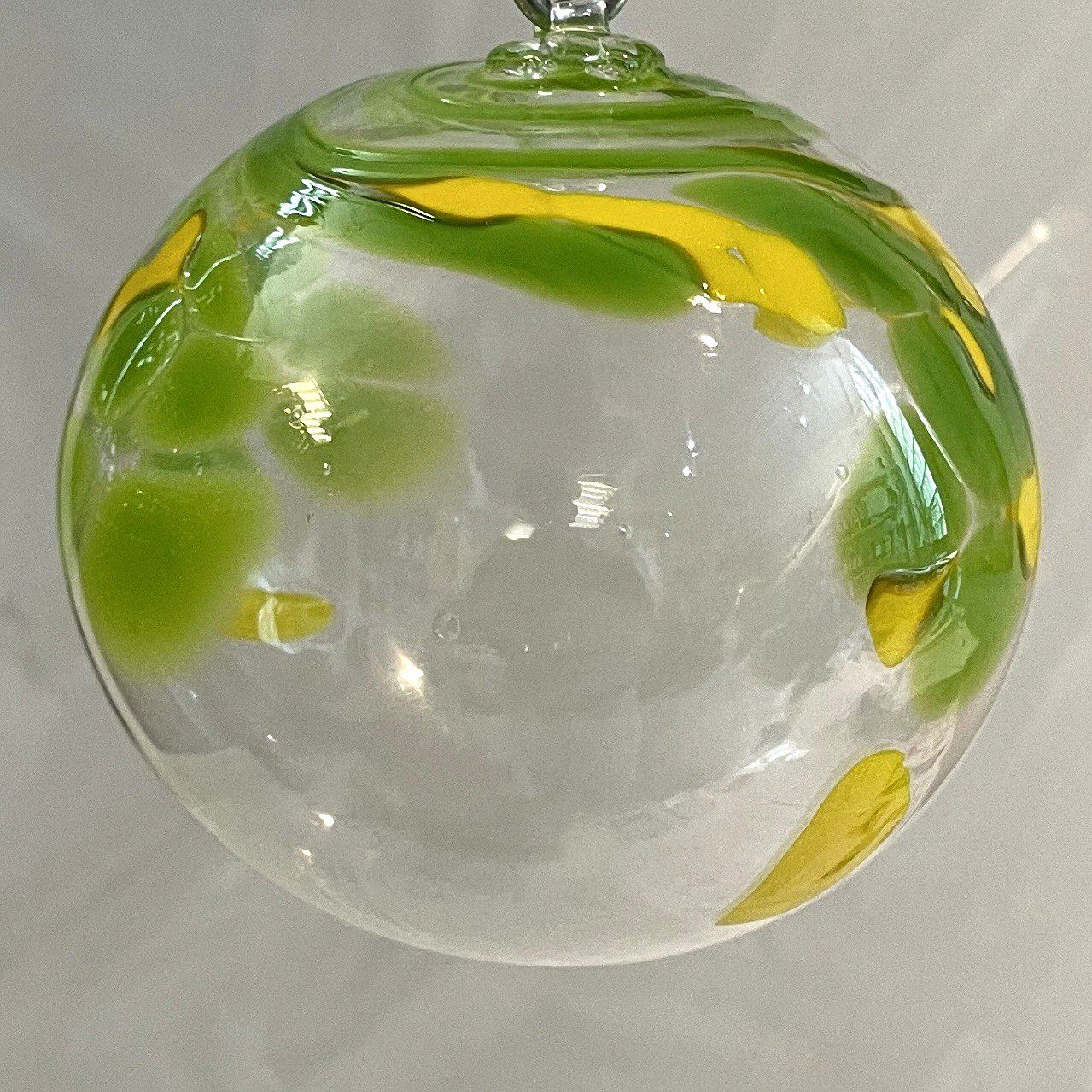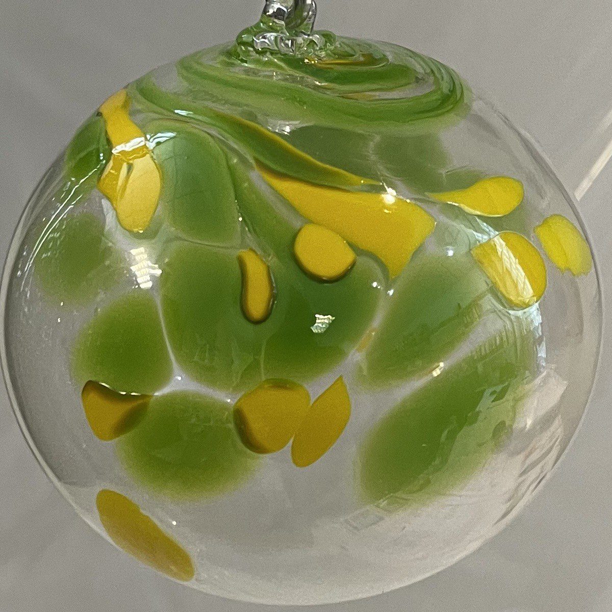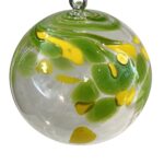 Glaskugel zum hängen in grün gelb klar mundgeblasen Durchmesser ca.11 cm