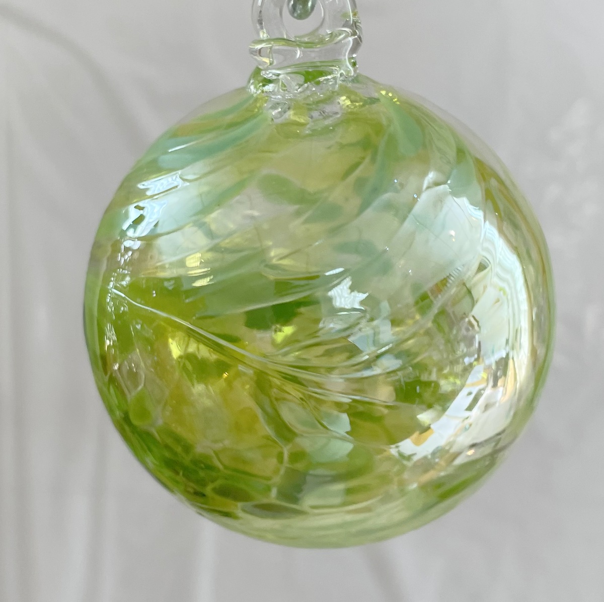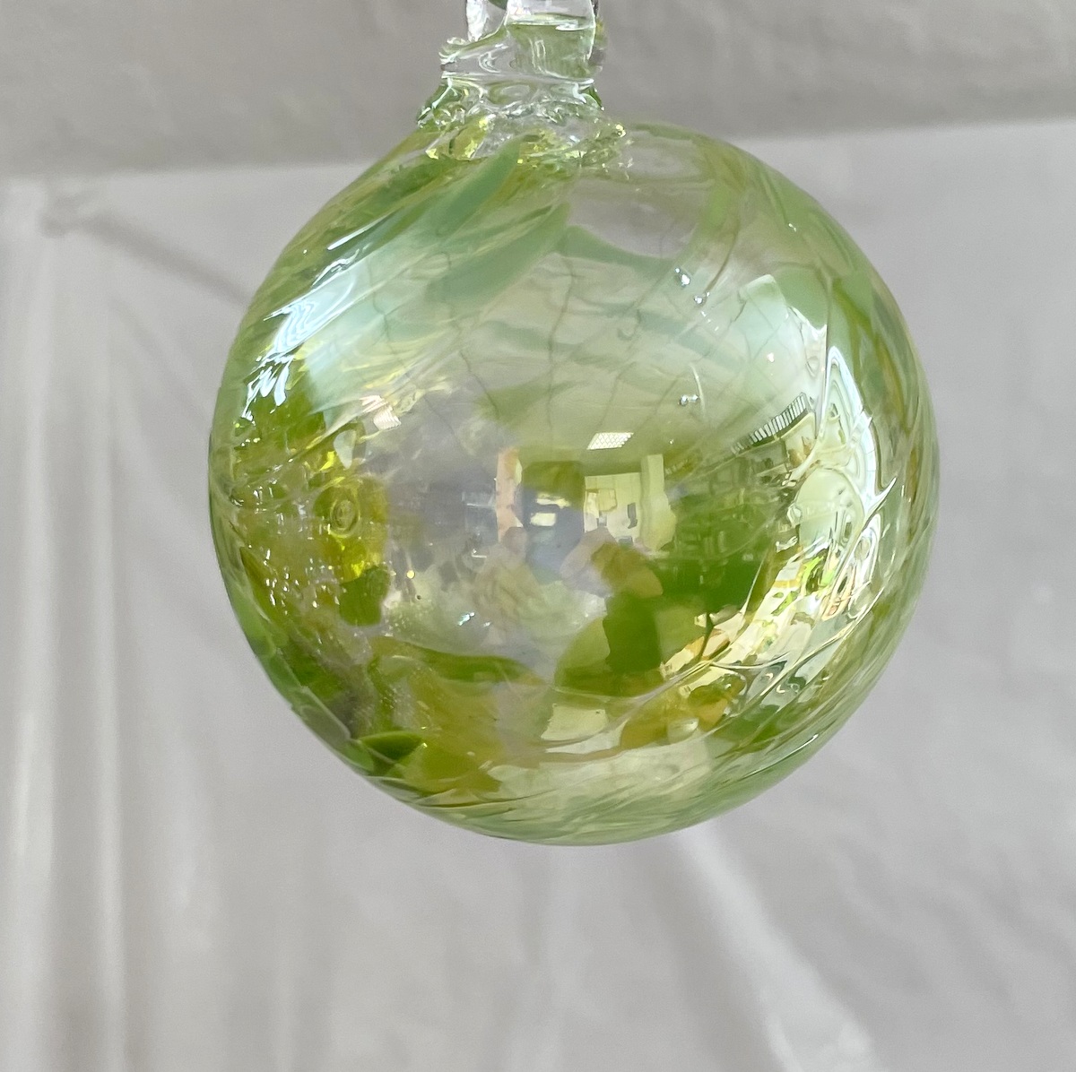 Kugel zum hängen bunte Glaskugel Ornament grün gelb klar Fenster Dekoration mundgeblasenes Kristallglas Durchmesser ca.8 cm Oberstdorfer Glashütte