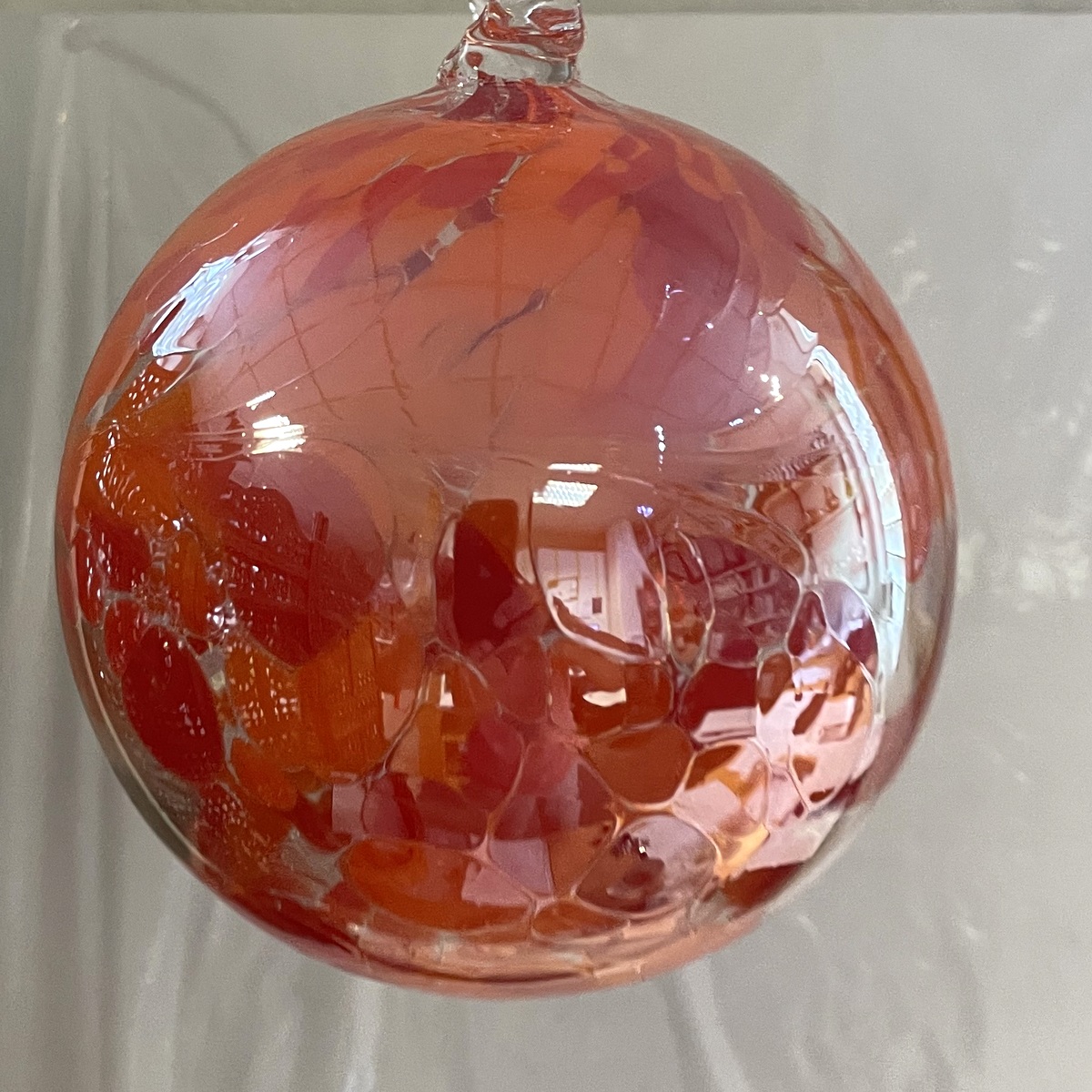 Kugel zum hängen Bunte Glaskugel Ornament orange rot klar Fensterdekoration mundgeblasenes Kristallglas Durchmesser ca. 15 cm