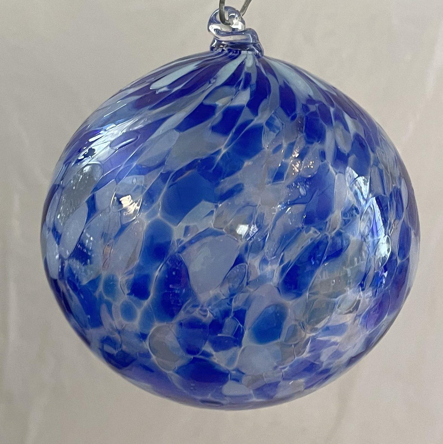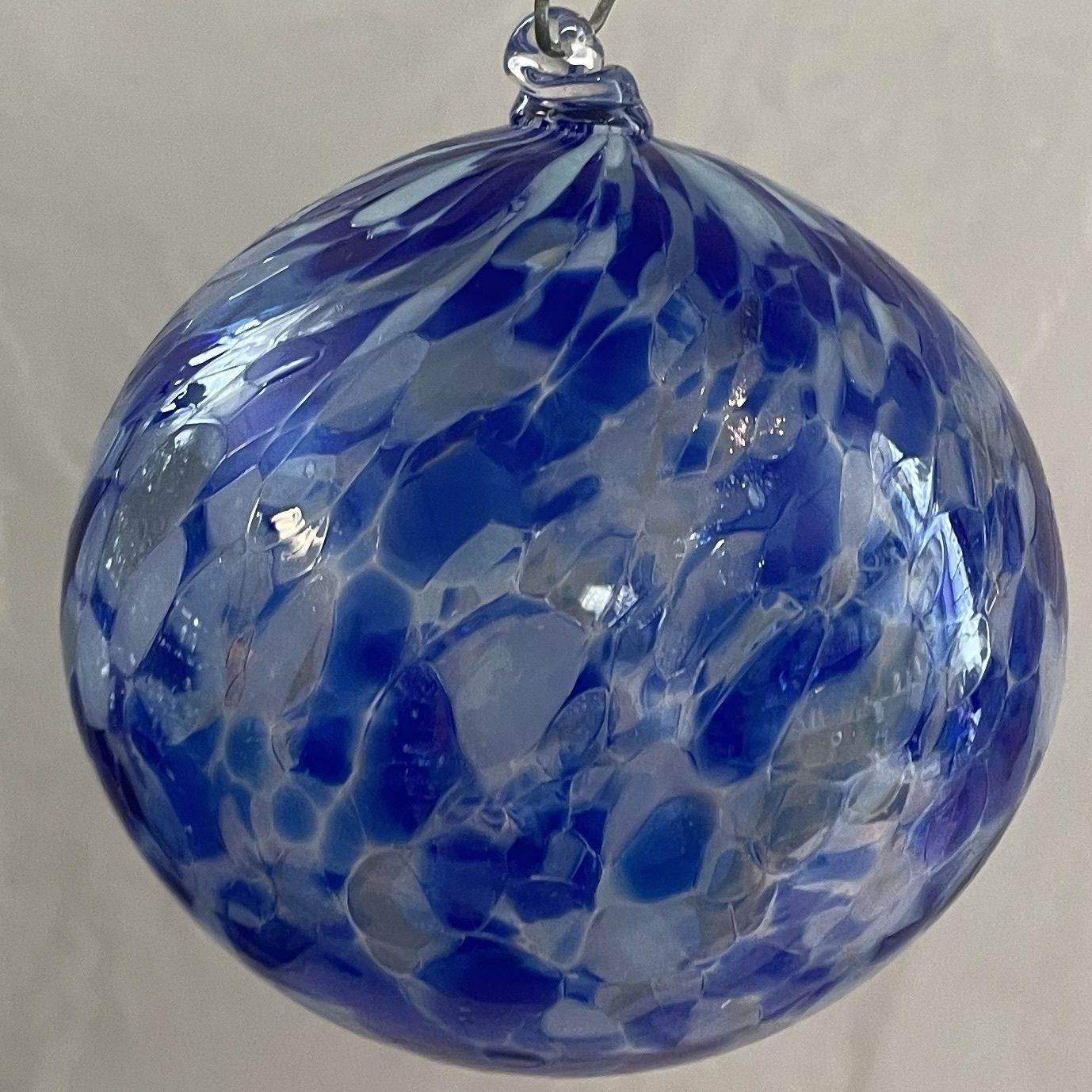 Glaskugel zum hängen in blau bunt gedreht mundgeblasen Durchmesser ca.13 cm