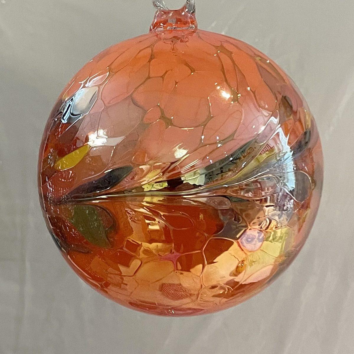 Kugel zum hängen Bunte Glaskugel gelb orange bunt mit Metalleffekt Fensterdekoration mundgeblasenes Kristallglas Durchmesser ca. 15 cm