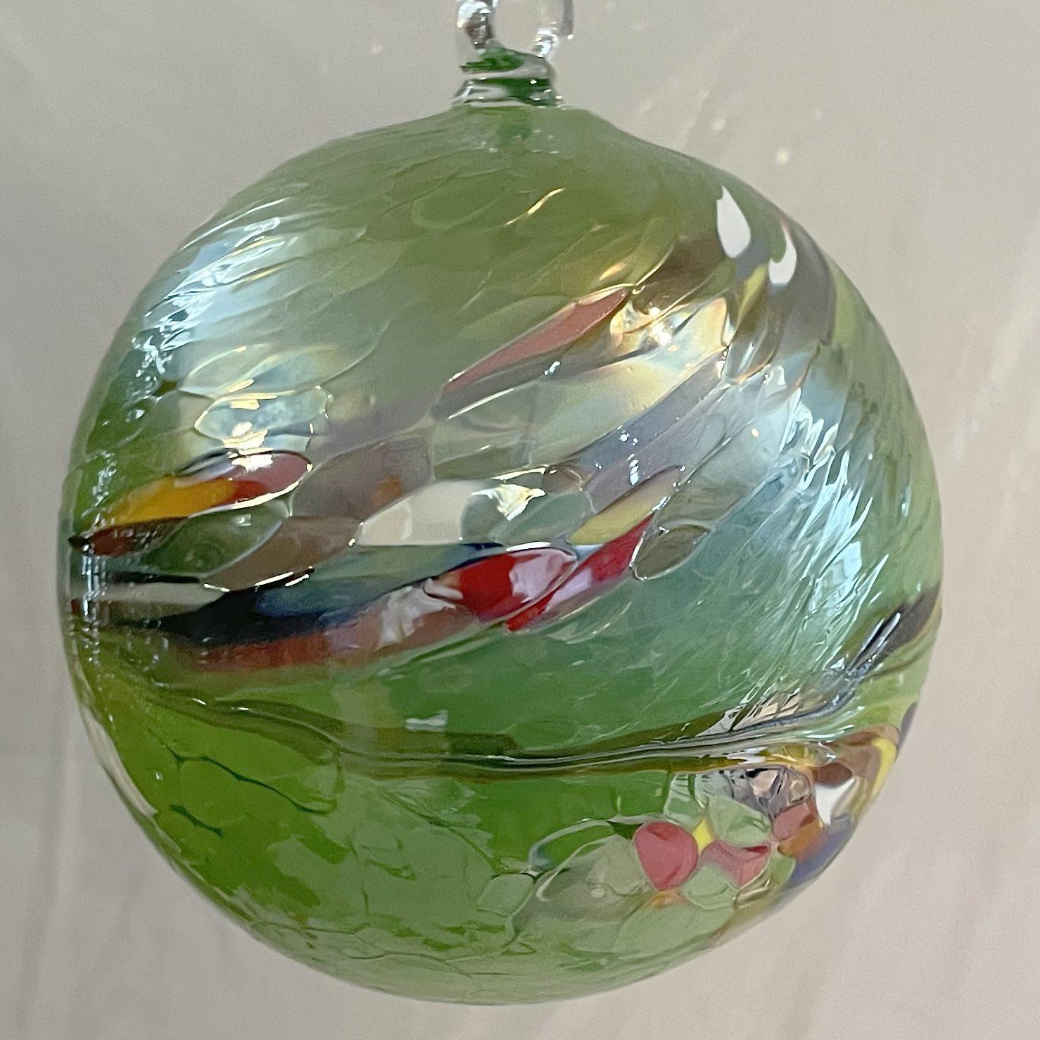 Kugel zum hängen Bunte Glaskugel Ornament grün bunt Fensterdekoration mundgeblasenes Kristallglas Durchmesser ca. 10 cm