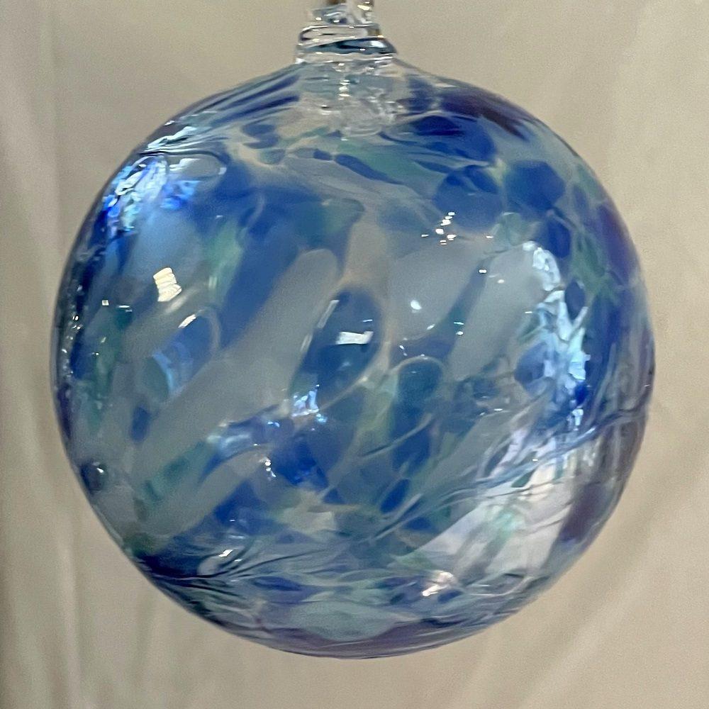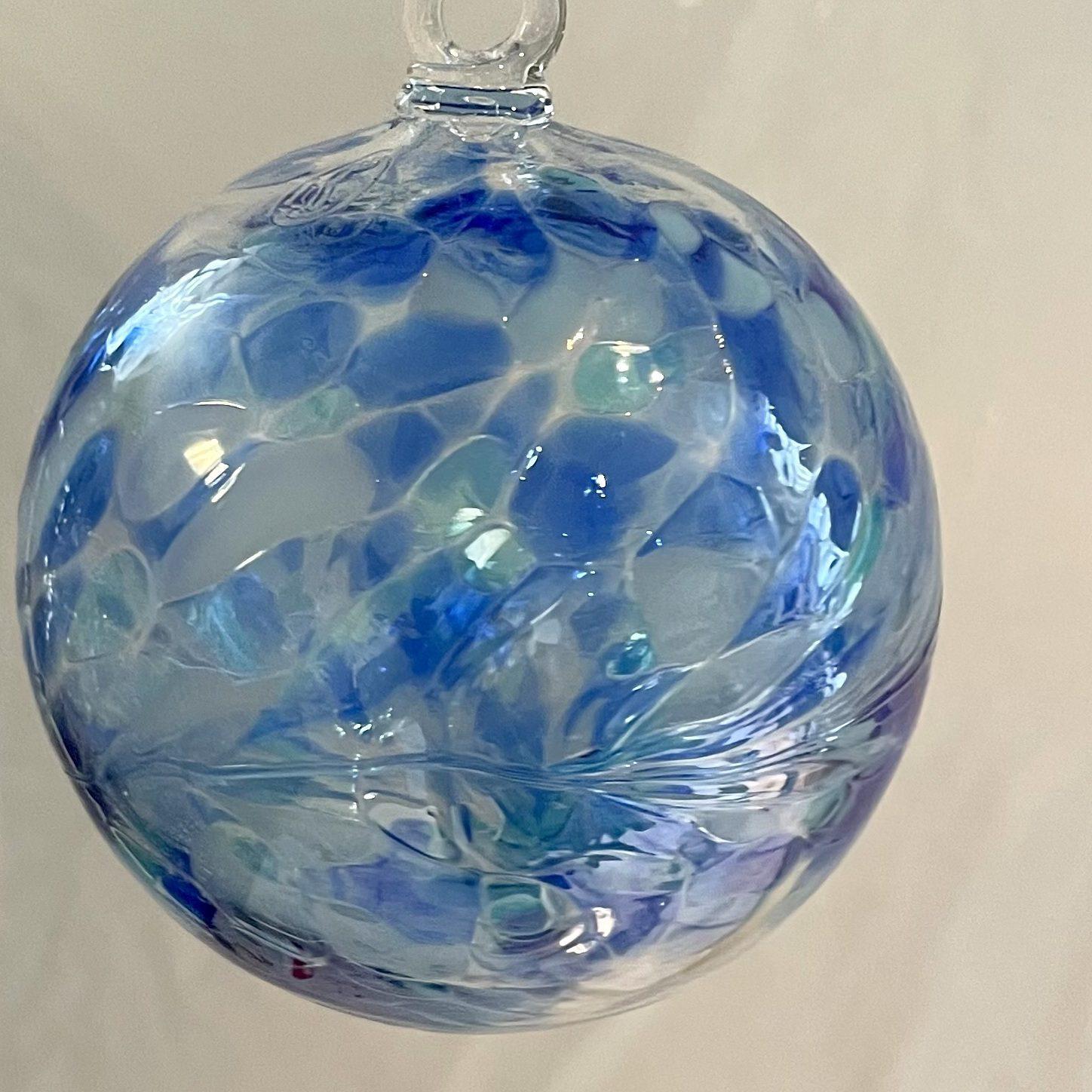 Kugel zum hängen bunte Glaskugel blau klar Fensterdekoration mundgeblasenes Kristallglas Durchmesser ca. 10 cm Oberstdorfer Glashütte