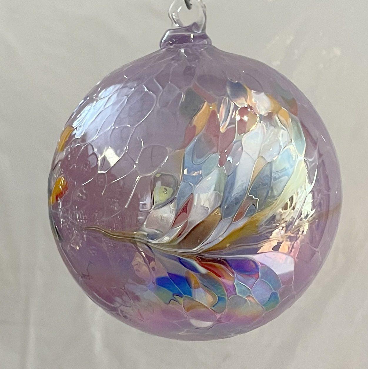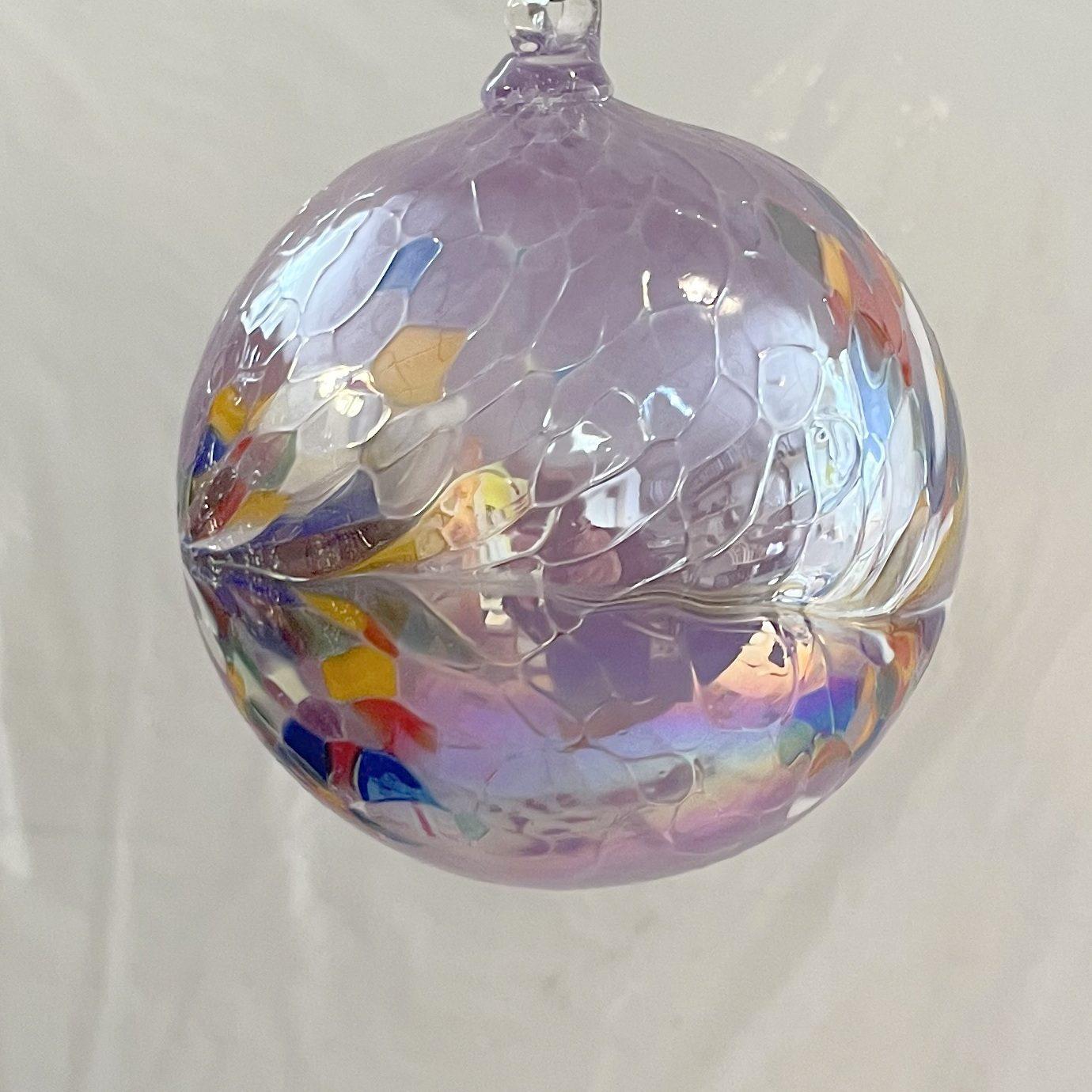 Kugel zum hängen Bunte Glaskugel Ornament lila bunt Fensterdekoration mundgeblasenes Kristallglas Durchmesser ca. 12 cm
