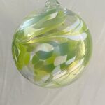 Kugel zum hängen Bunte Glaskugel Ornament grün weiß klar Fensterdekoration mundgeblasenes Kristallglas Durchmesser ca. 15 cm