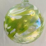 Kugel zum hängen bunte Glaskugel grün weiß klar Fensterdekoration mundgeblasenes Kristallglas Durchmesser ca. 15 cm