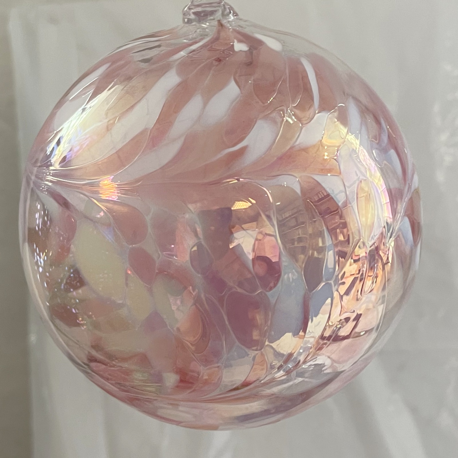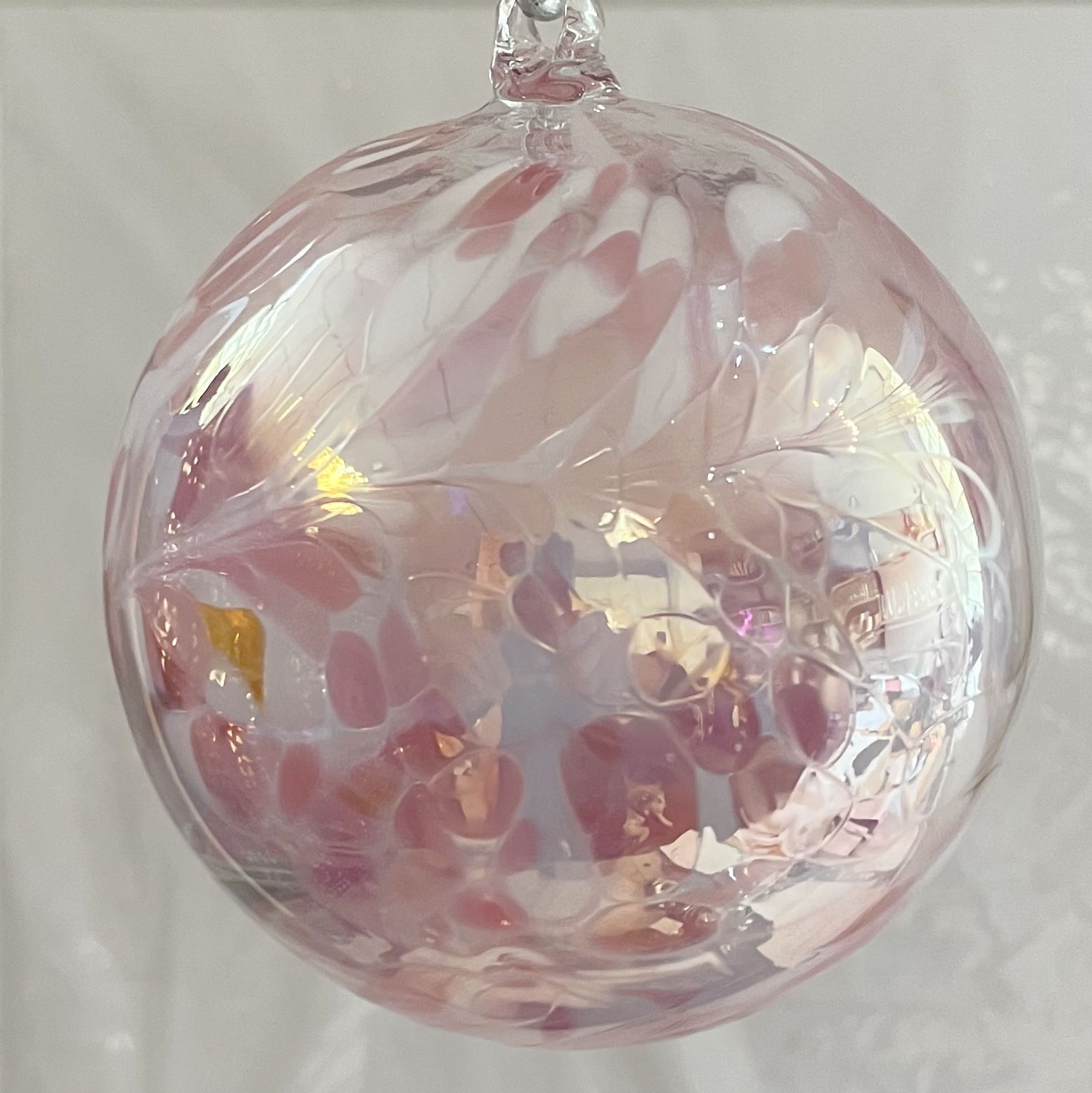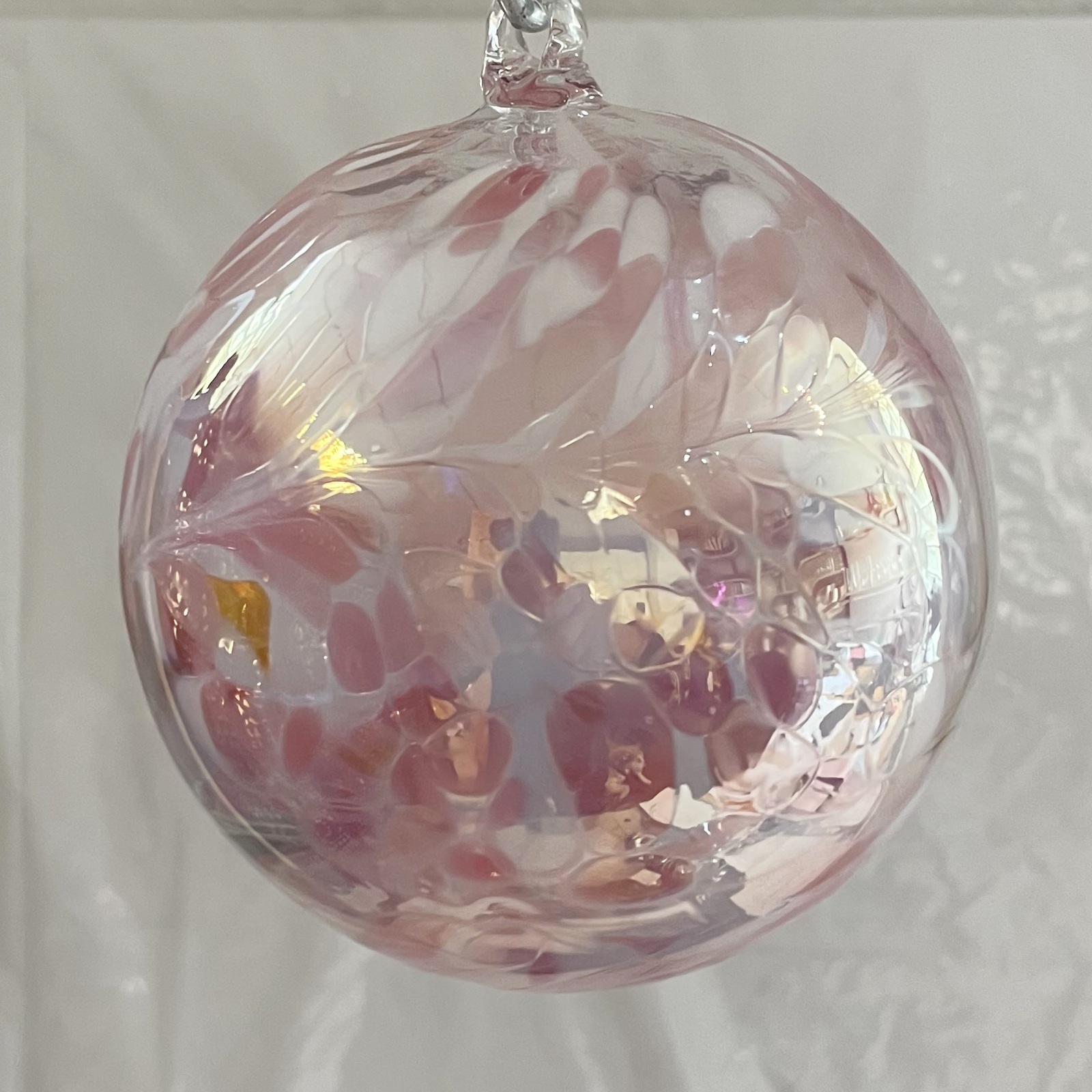 Kugel zum hängen Bunte Glaskugel Ornament rosa weiß klar Fensterdekoration mundgeblasenes Kristallglas Durchmesser ca. 12 cm