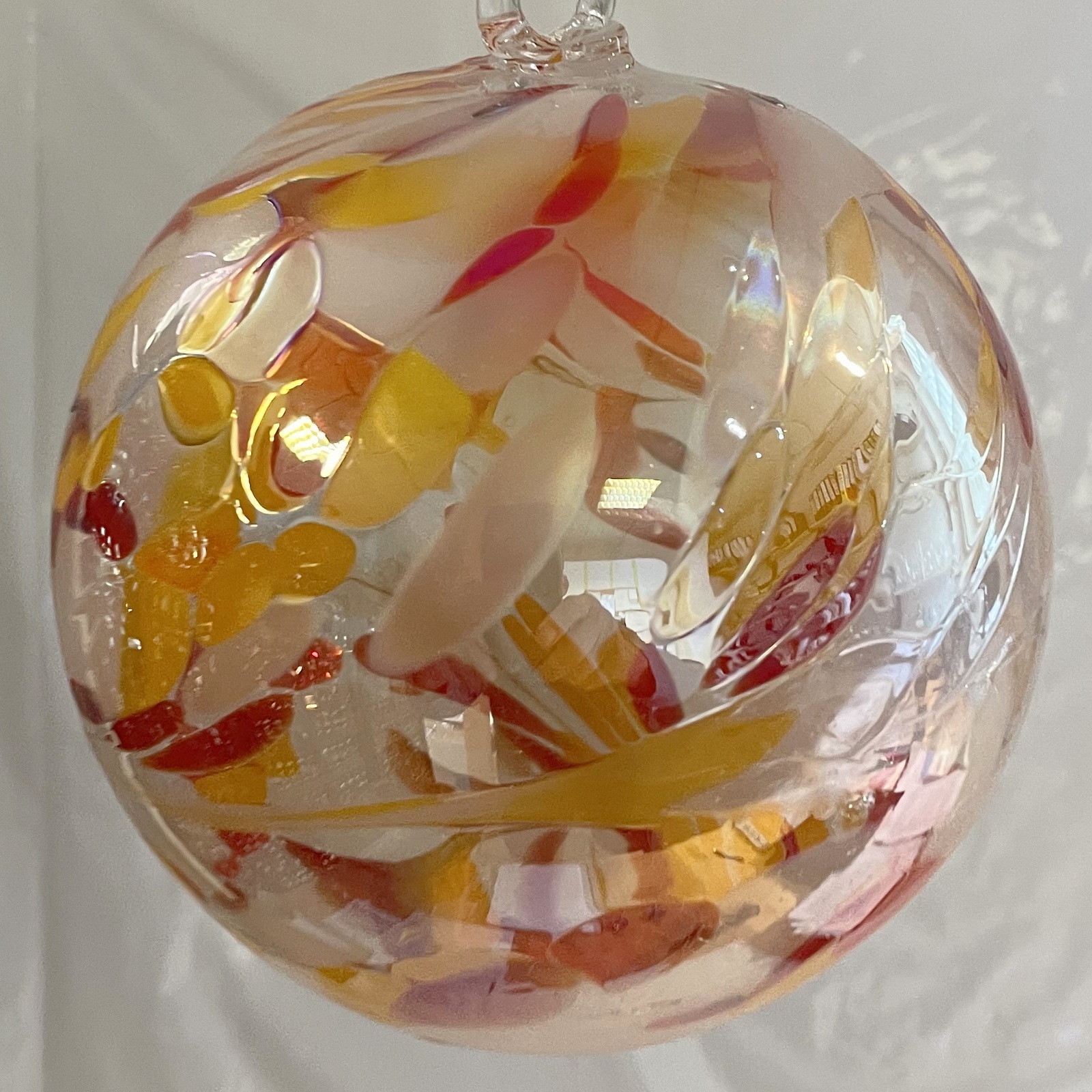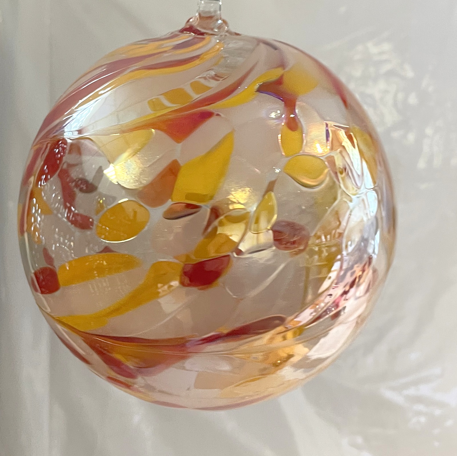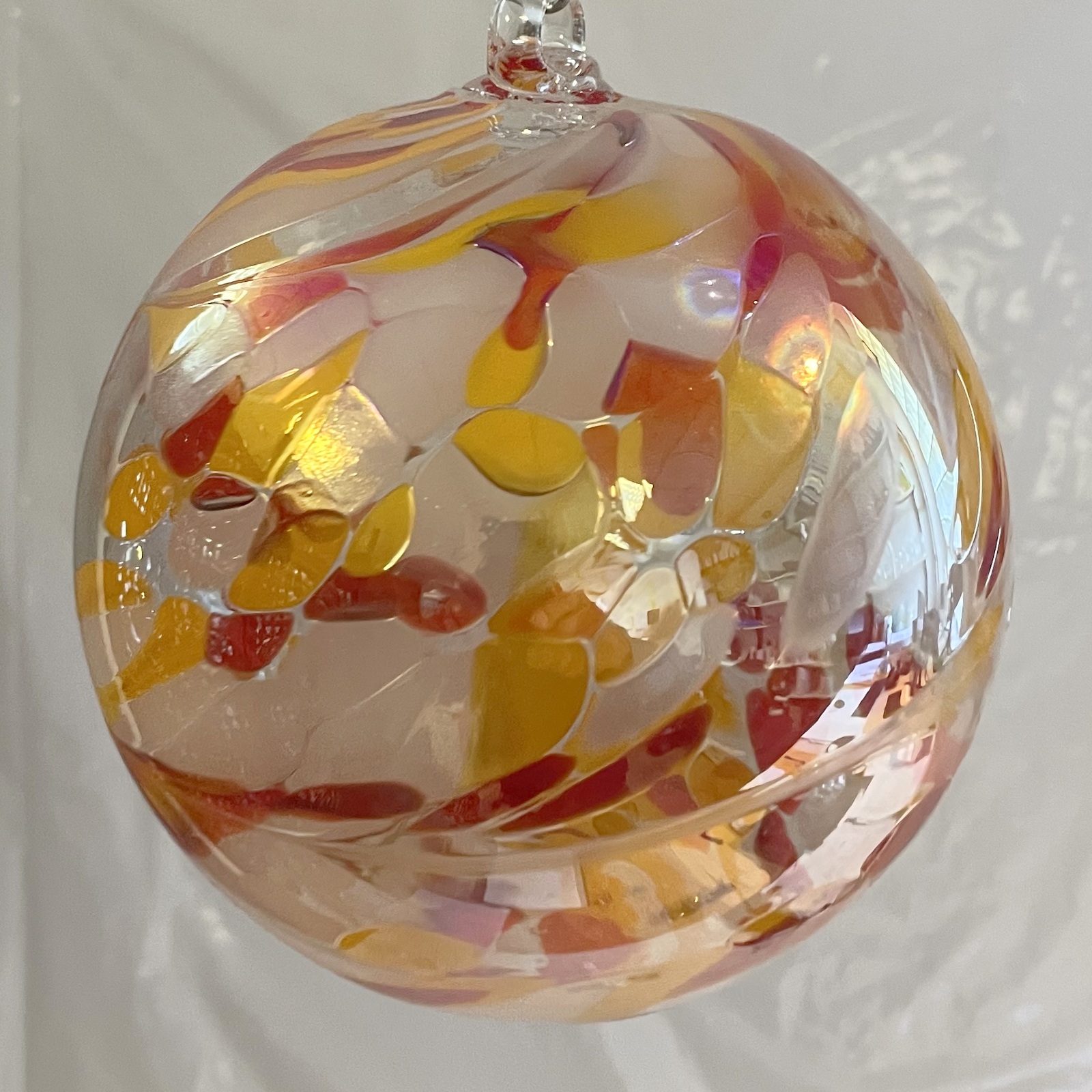 Kugel zum hängen bunte Glaskugel rot gelb klar Fensterdekoration mundgeblasenes Kristallglas Durchmesser ca. 15 cm