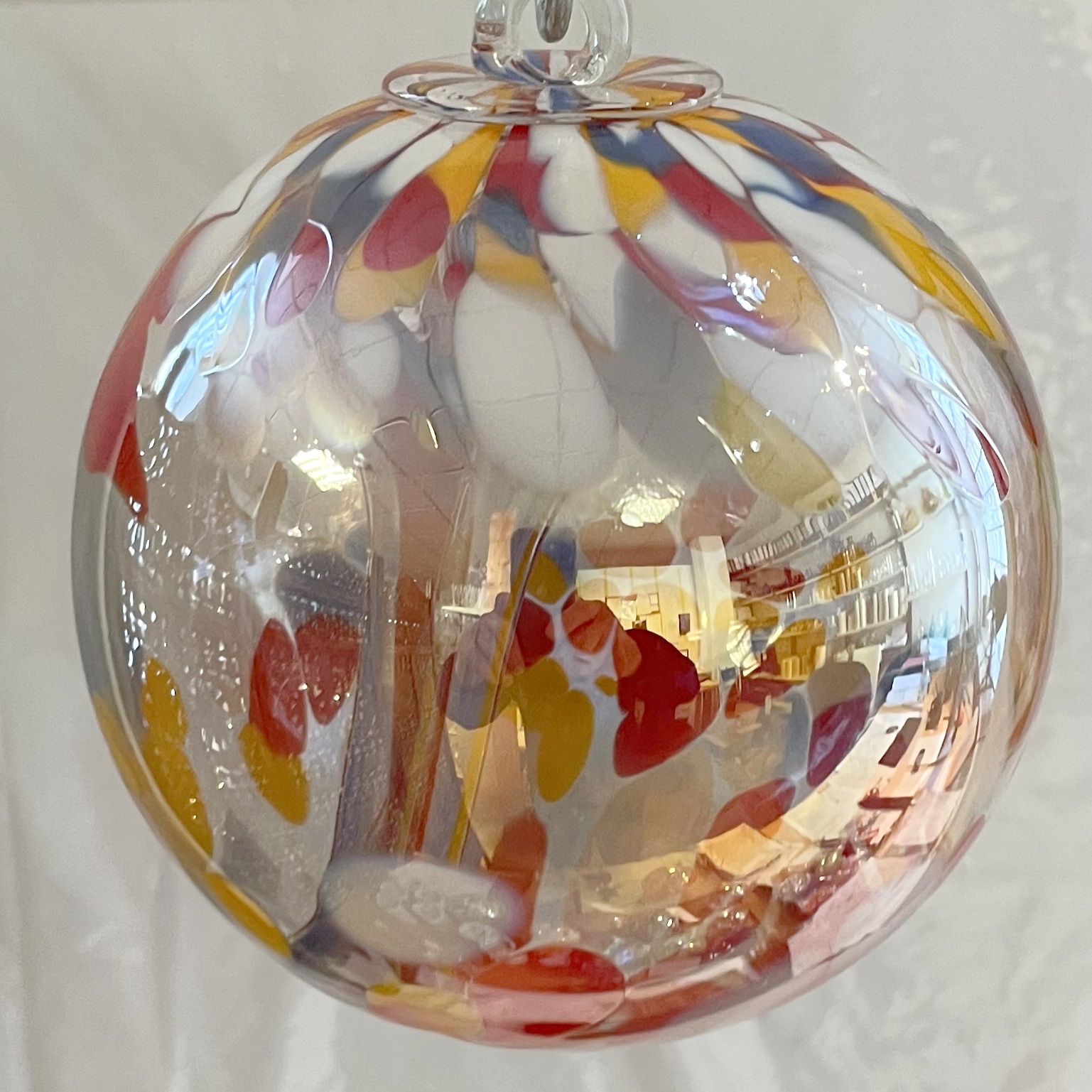 Kugel zum hängen mit Innenleben bunte Glaskugel bunt klar Fensterdekoration mundgeblasenes Kristallglas Durchmesser ca. 15 cm