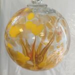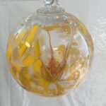 Kugel zum hängen mit Innenleben bunte Glaskugel gelb klar Fensterdekoration mundgeblasenes Kristallglas Durchmesser ca. 15 cm